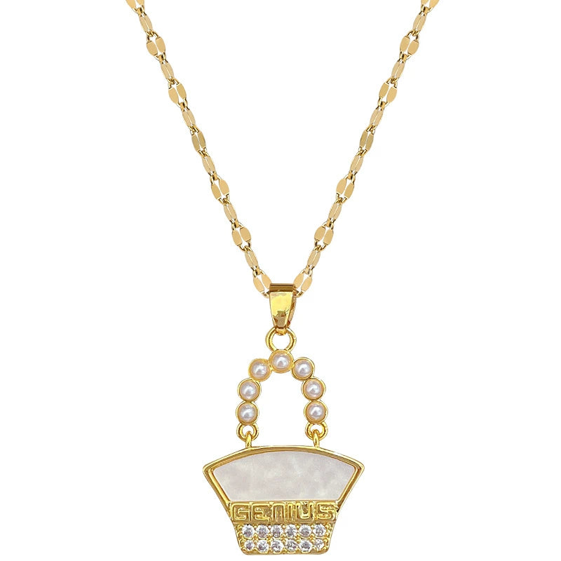 Necklace Stainless Steel Pearl Shell Bag Geometric Light Luxury Elegant Gorgeous For Women