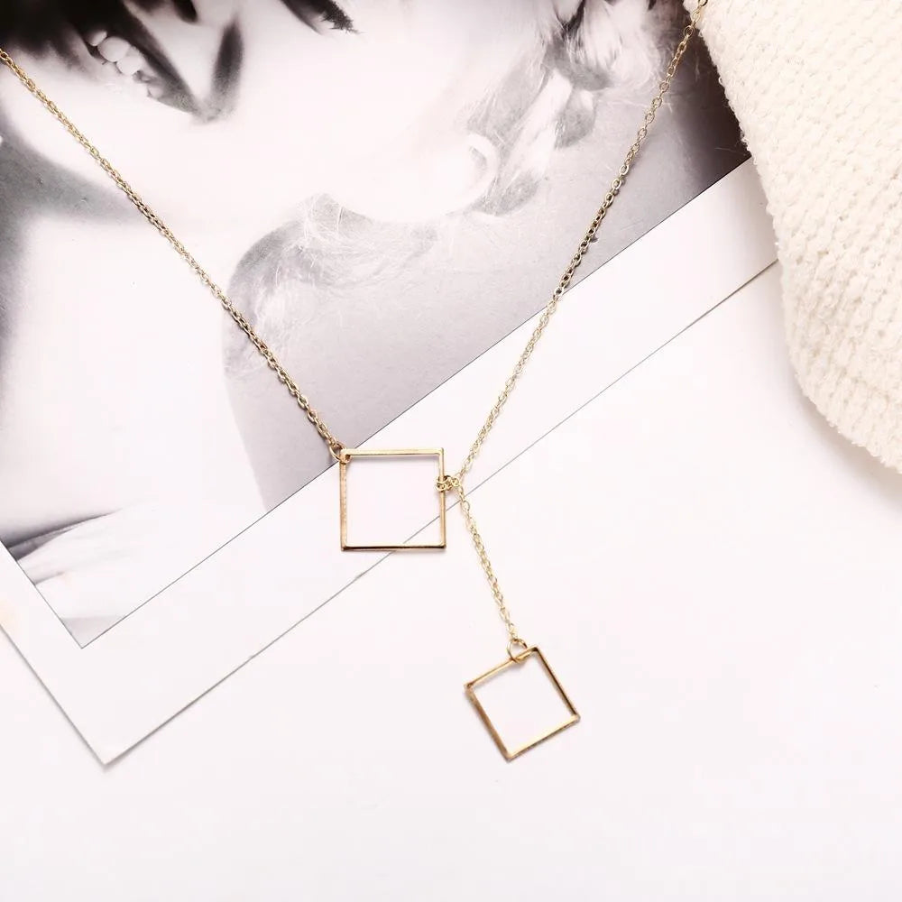 New Clavicle Chain Creative Retro Simple Geometric Square Pendant Necklace Temperament Sweater Chain Women