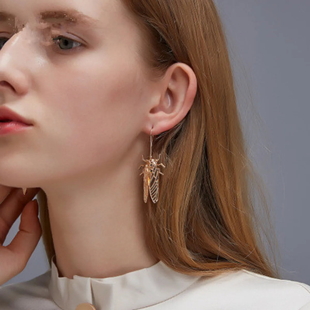 New Creative Insect Golden Cicada Long Earrings Wholesale Gooddiy
