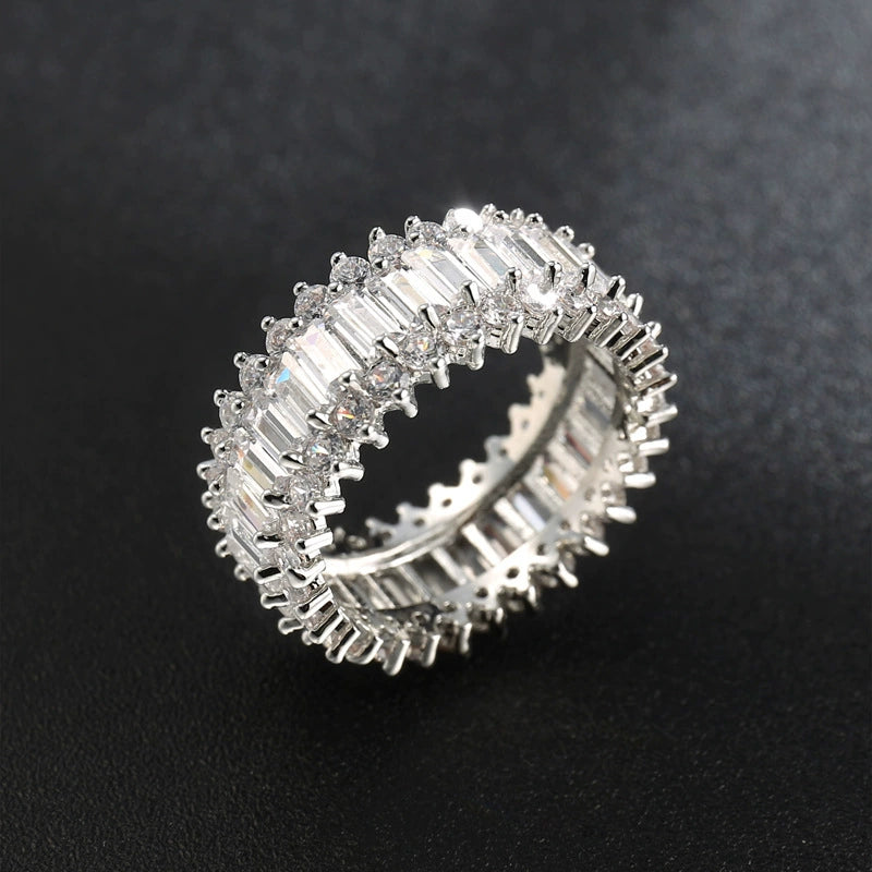 New Full Diamond Ring Fashion Copper Ring Gem Popular Circle Of Long Square Super Flash Zircon Jewelry