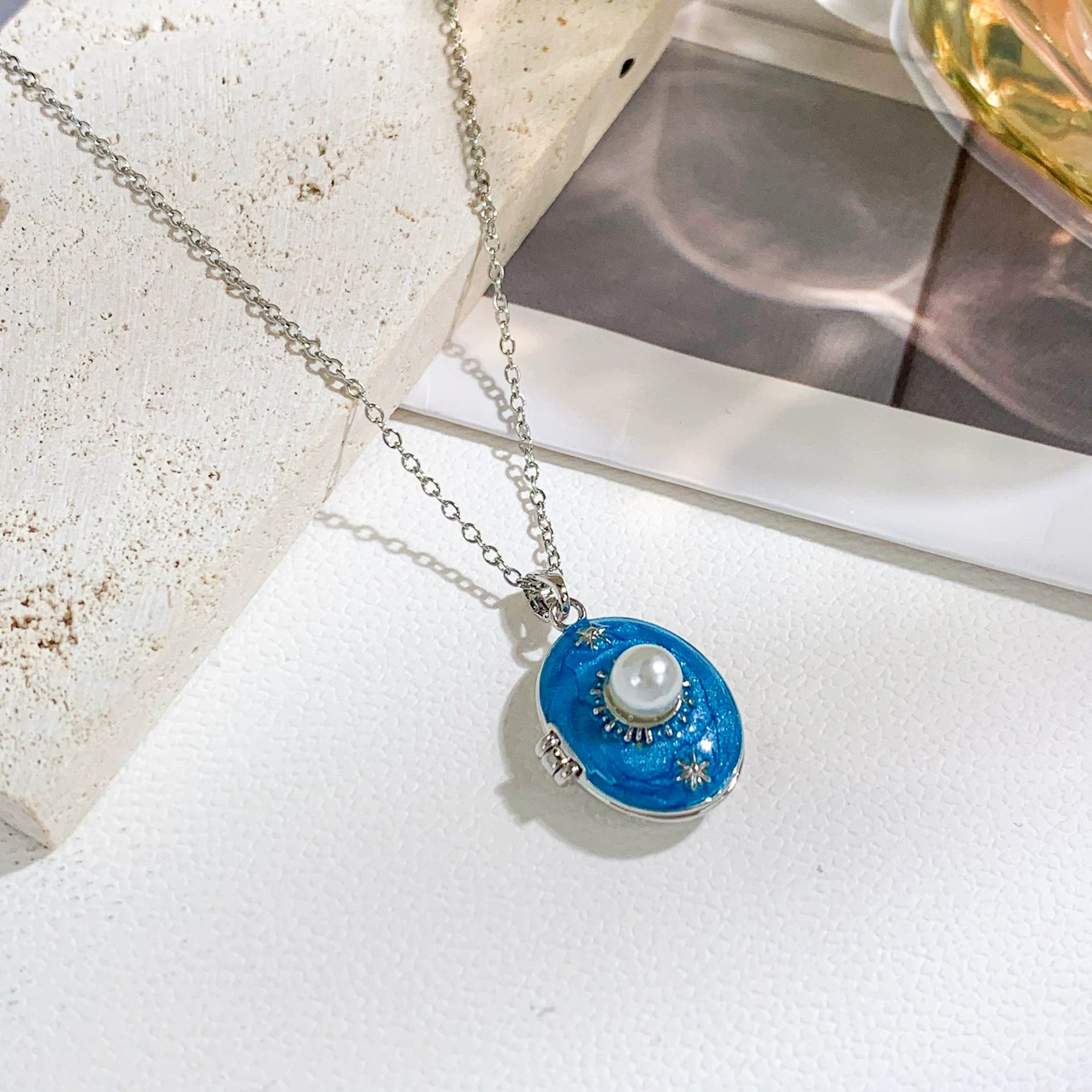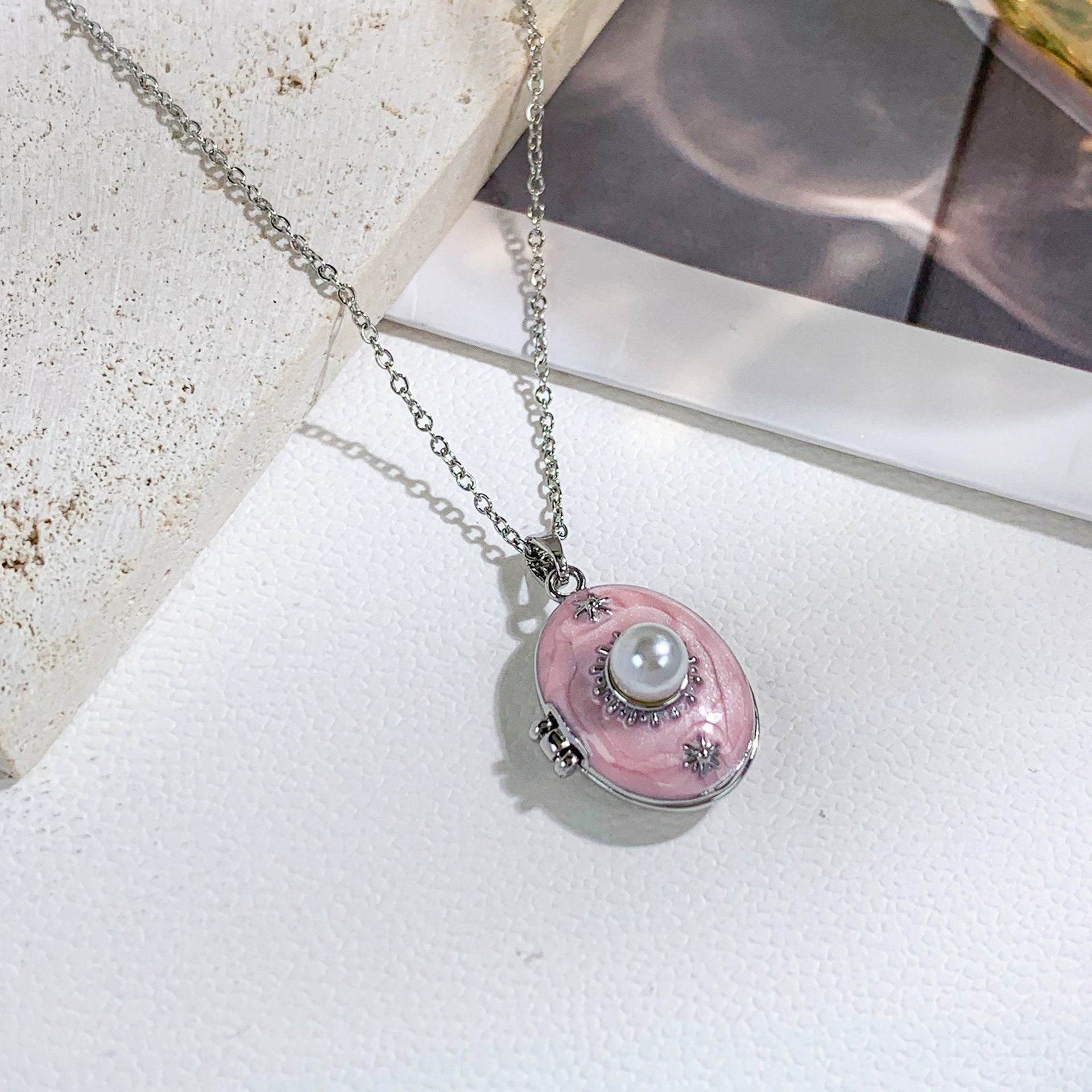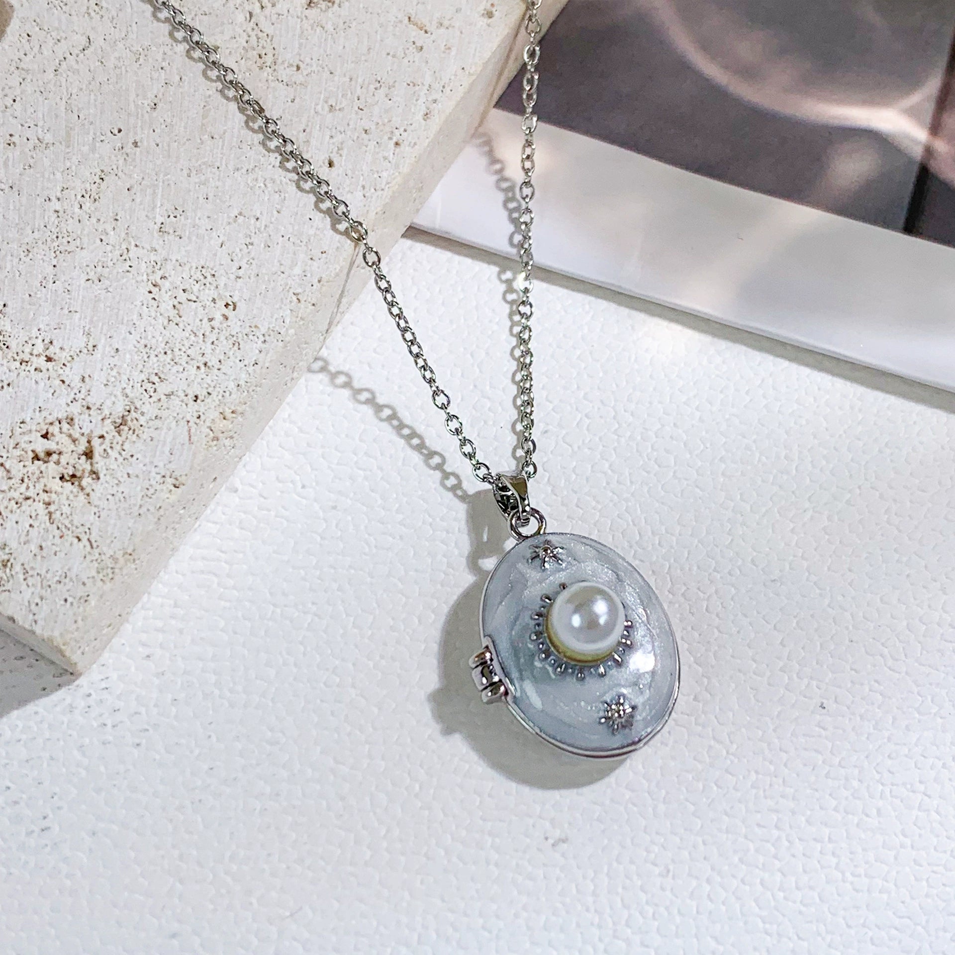 Pearl Star Oval Photo Box Necklace Copper Titanium Steel Real Gold Plated Sweet Style Women's Accessories