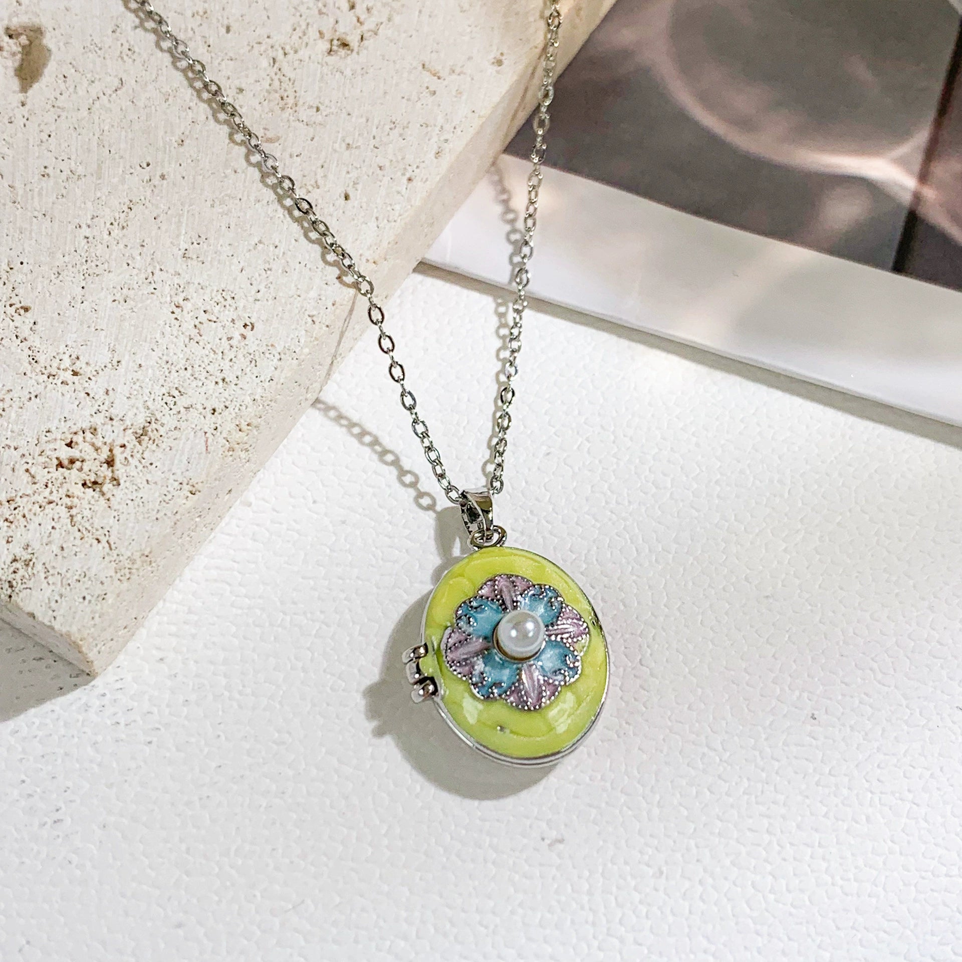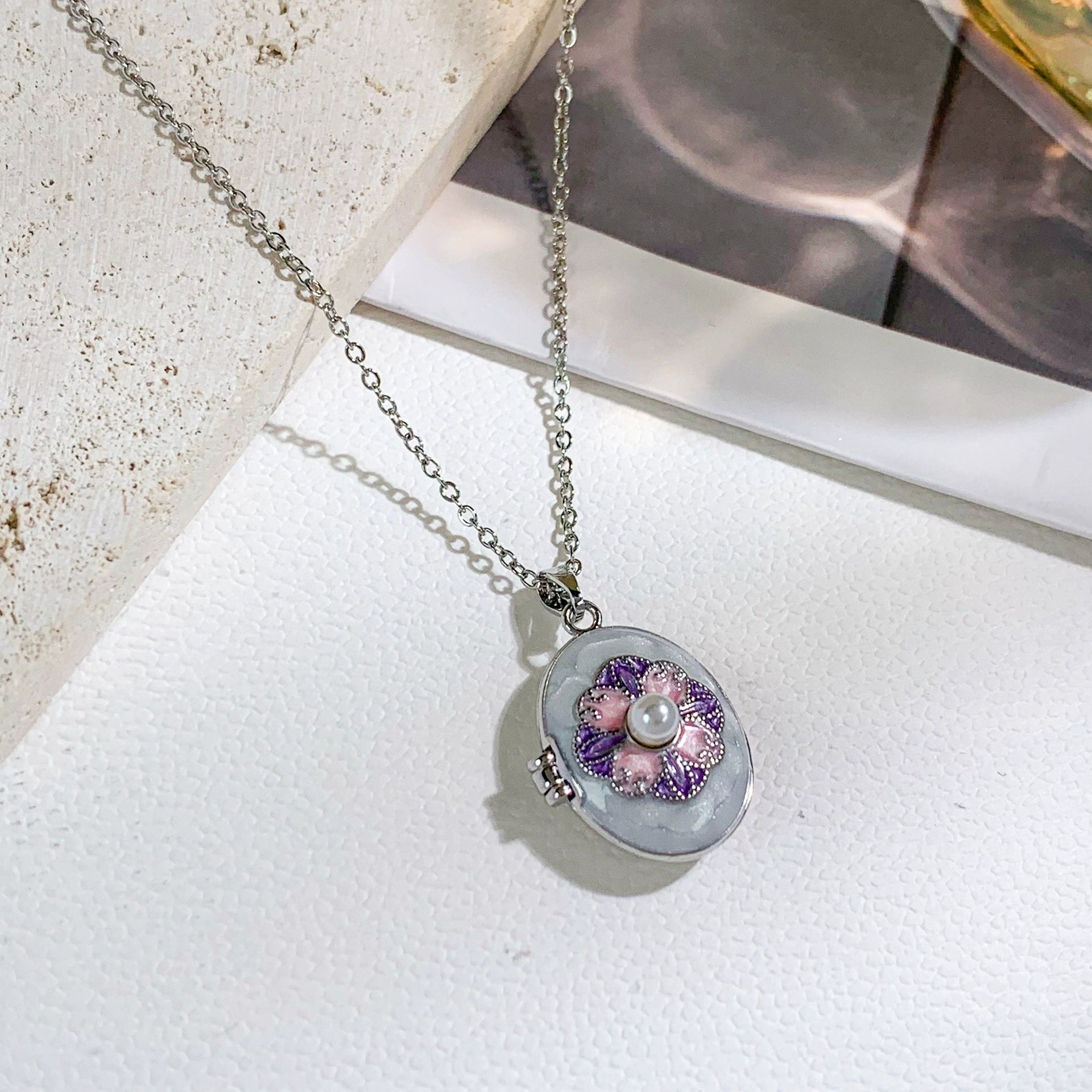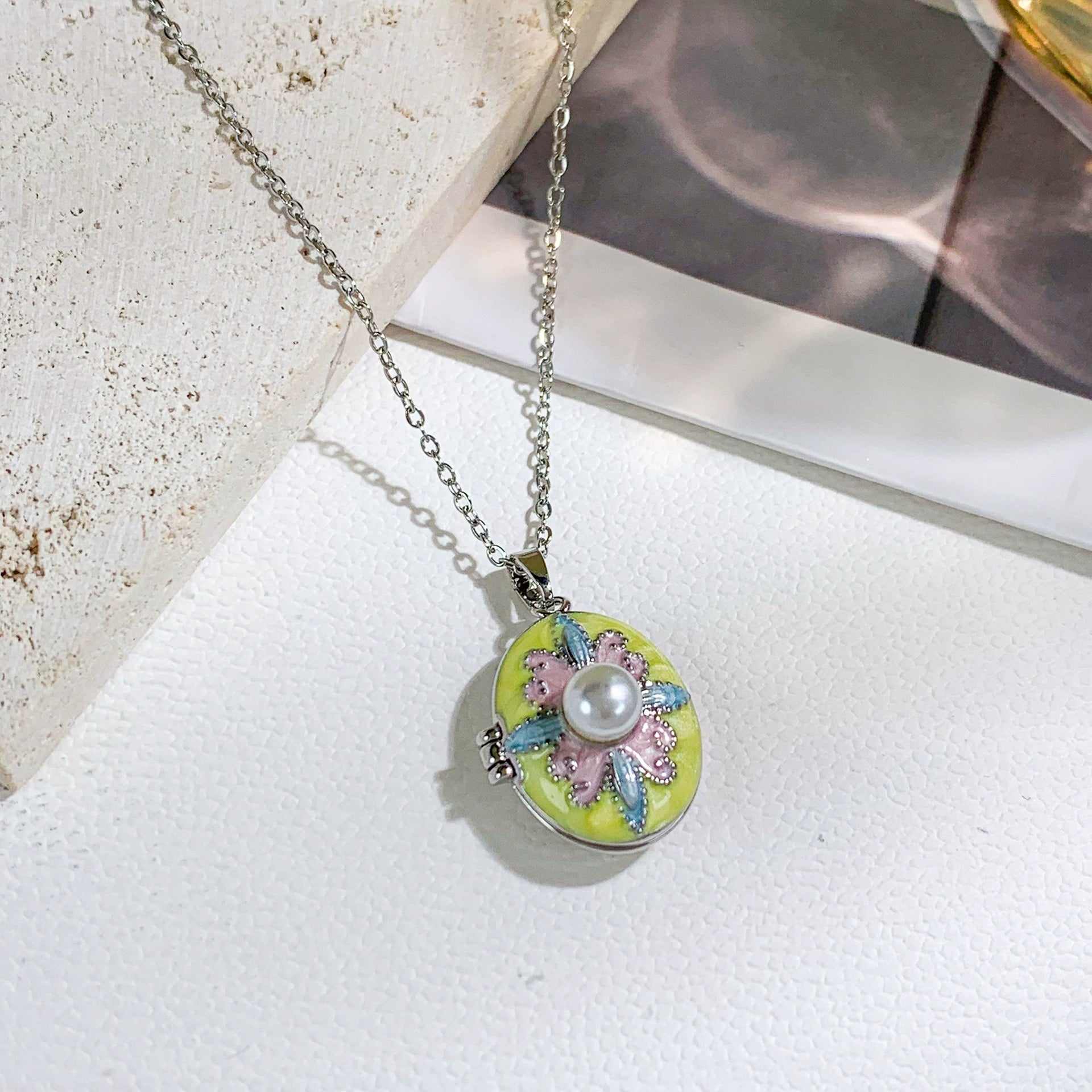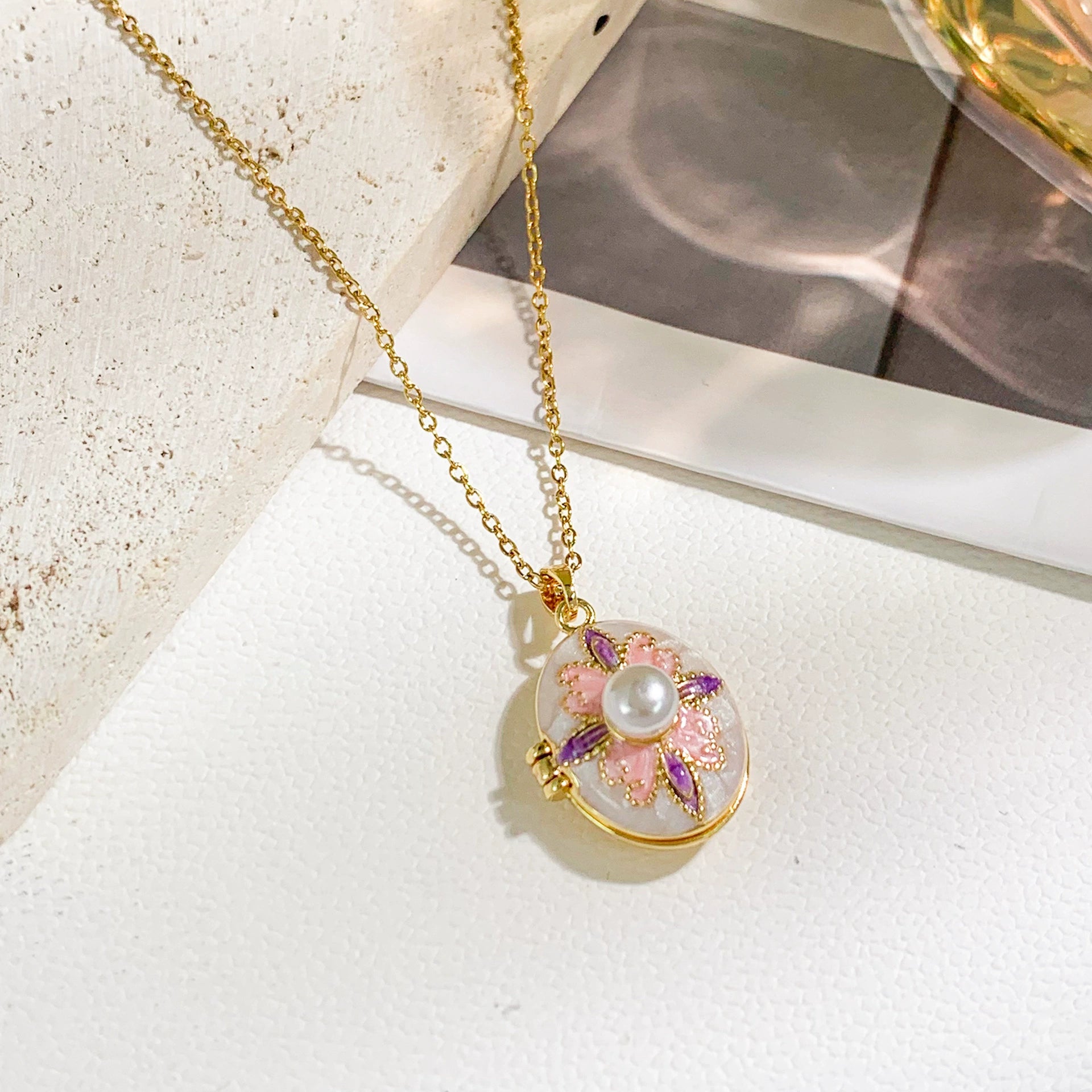 Pearl Star Oval Photo Box Necklace Copper Titanium Steel Real Gold Plated Sweet Style Women's Accessories