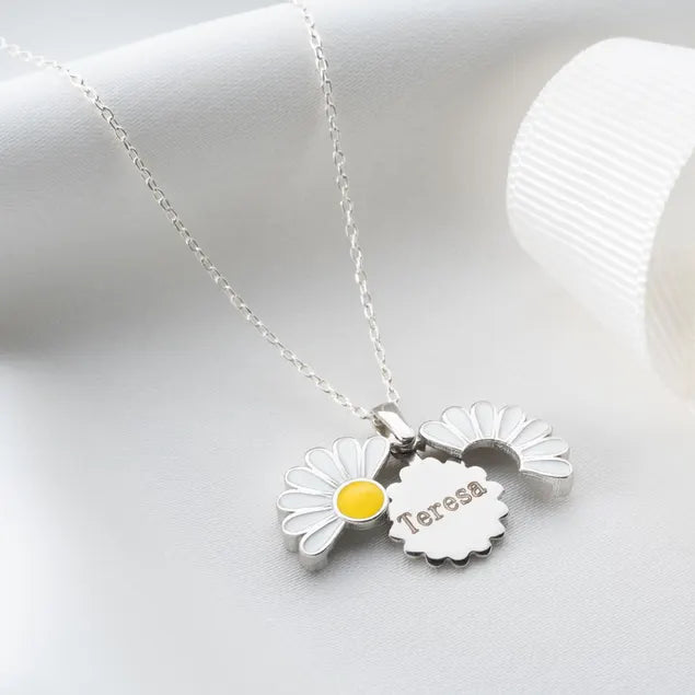 Personalised Gift for Women. Personalized necklace with daisy flower. Openable necklace for secret message. If you are looking for a perfect Christmas Gift, this Personalised Daisy Name Necklace for Women will be a great choice. It is a handmade jewelry and is made of high quality material and labour for a personalized gift. Autumn Fall Gift. not tarnish. nickel free.