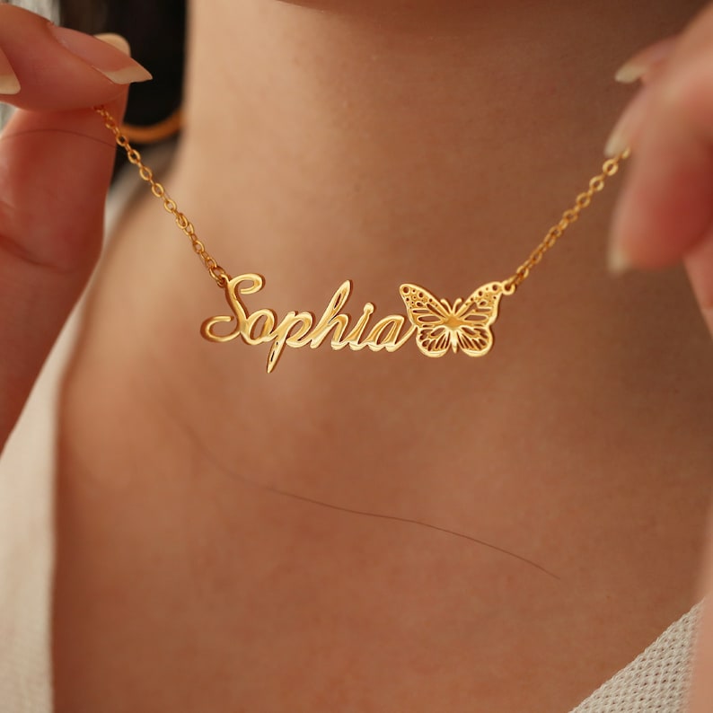 Personalized Name Necklace, 18k Gold Plate Name Necklace with Butterfly, Birth Butterfly, Minimalist Necklace, Best Gift for Her Birthday