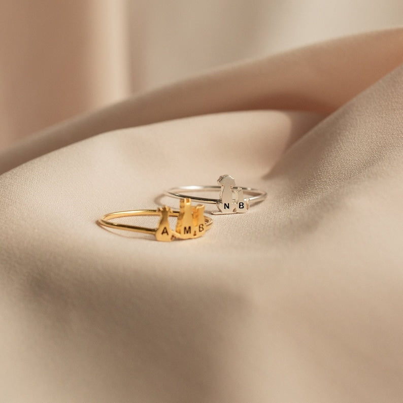 Introducing our Custom Pet Ring, a heartfelt tribute to your furry friend, perfect as a pet lover gift or memorial gift. This ring features a customizable design, allowing you to engrave the initials of your beloved pet. Carry their memory with you wherever you go, and honor their unconditional love with this meaningful and personalized piece ♡