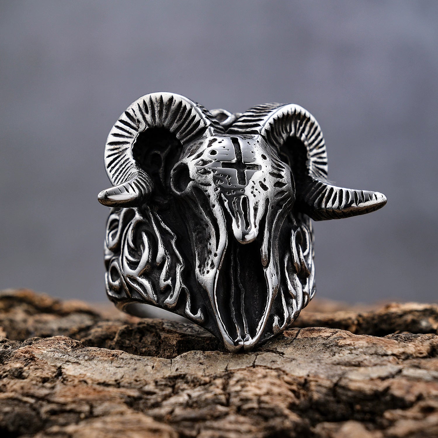 Punk Vintage Sheep Head Shape Stainless Steel Ring