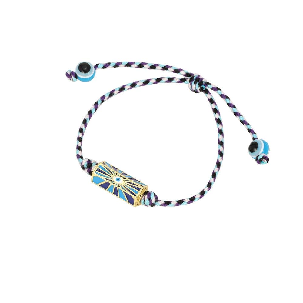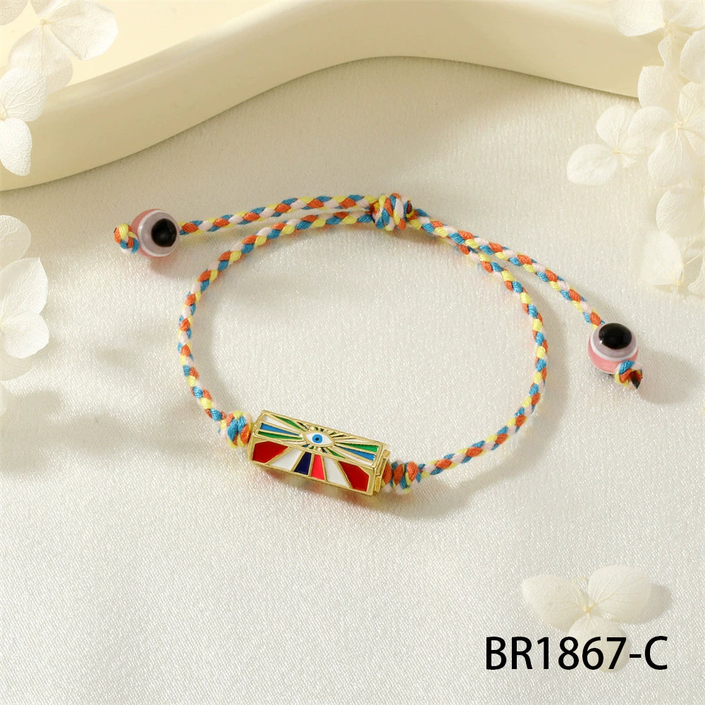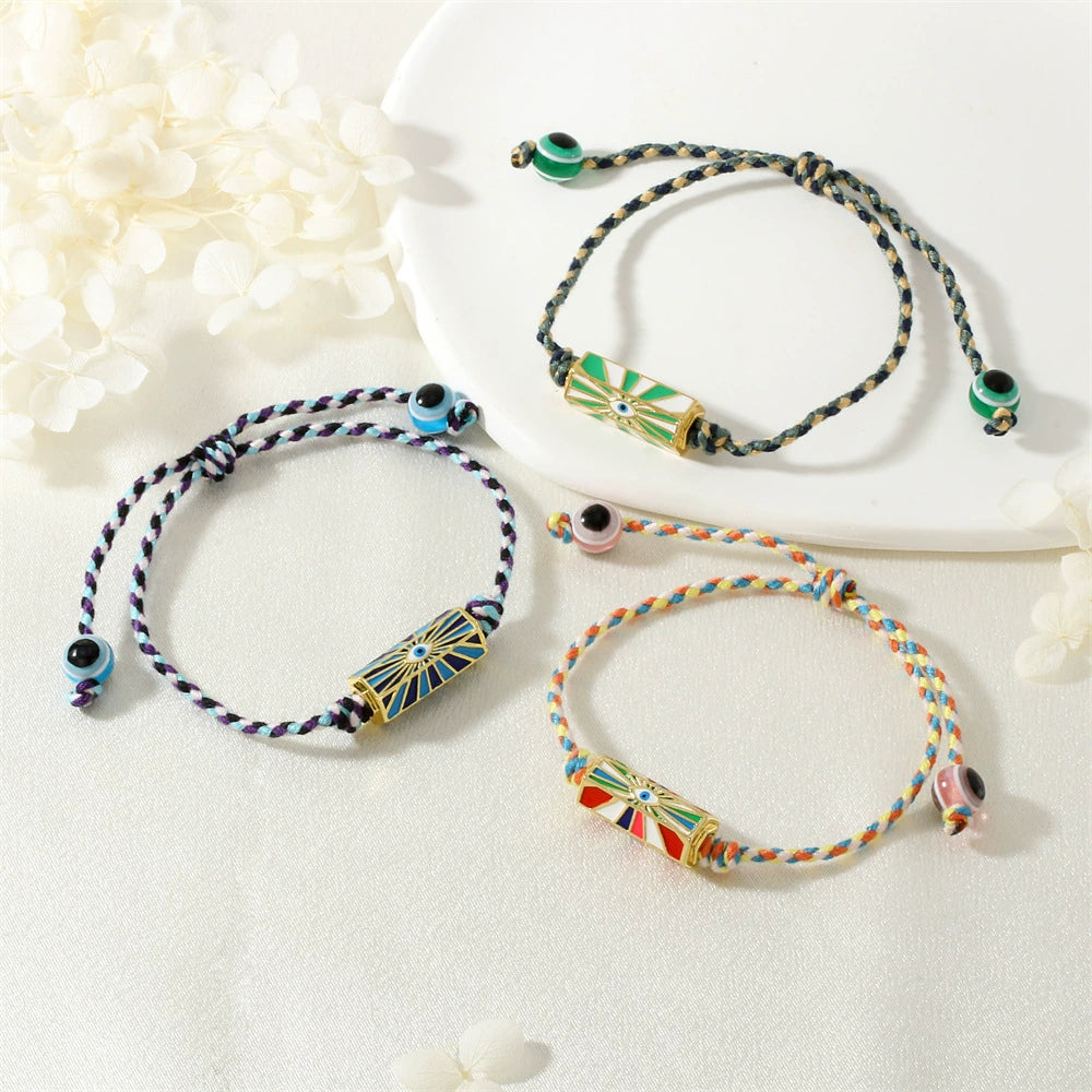 Red Rope Woven Bracelet With Demon Eye Knot Handmade Copper Plastic Bracelet In Geometric Style For Unisex
