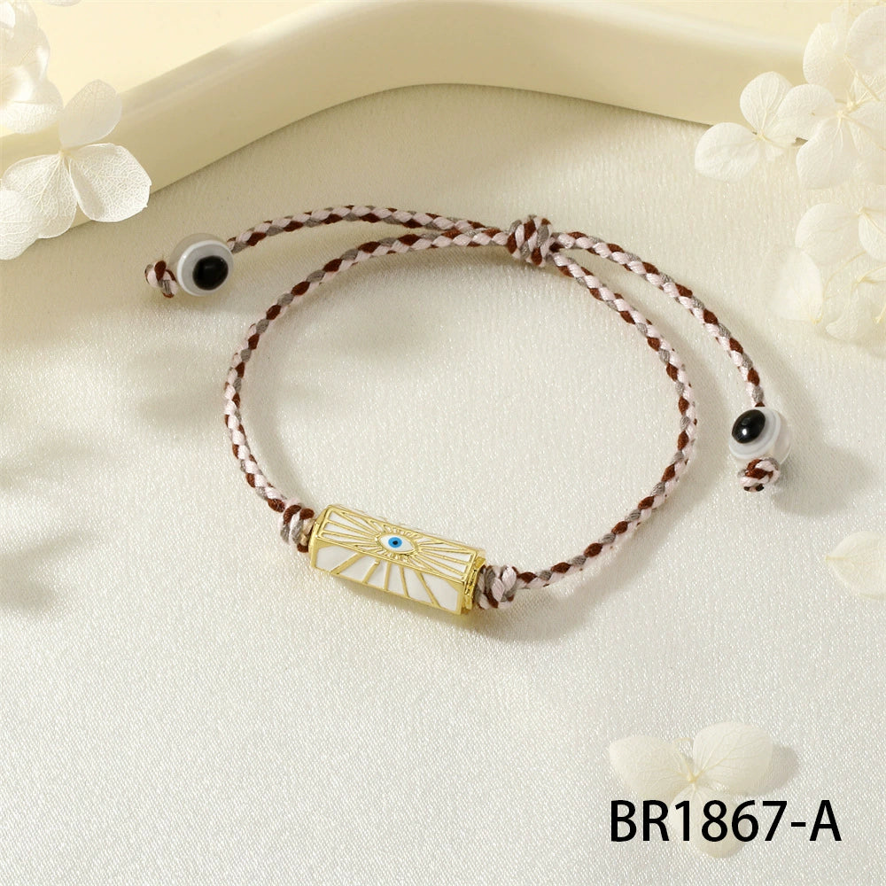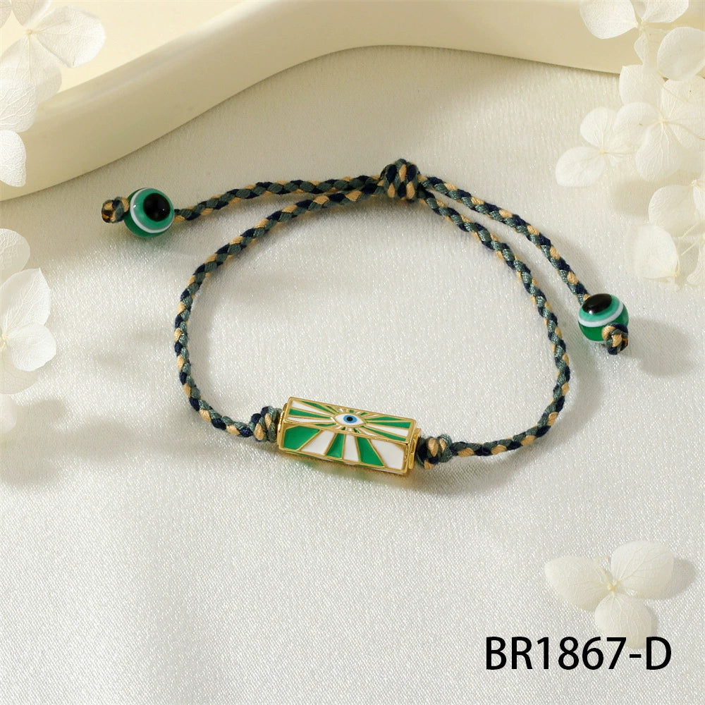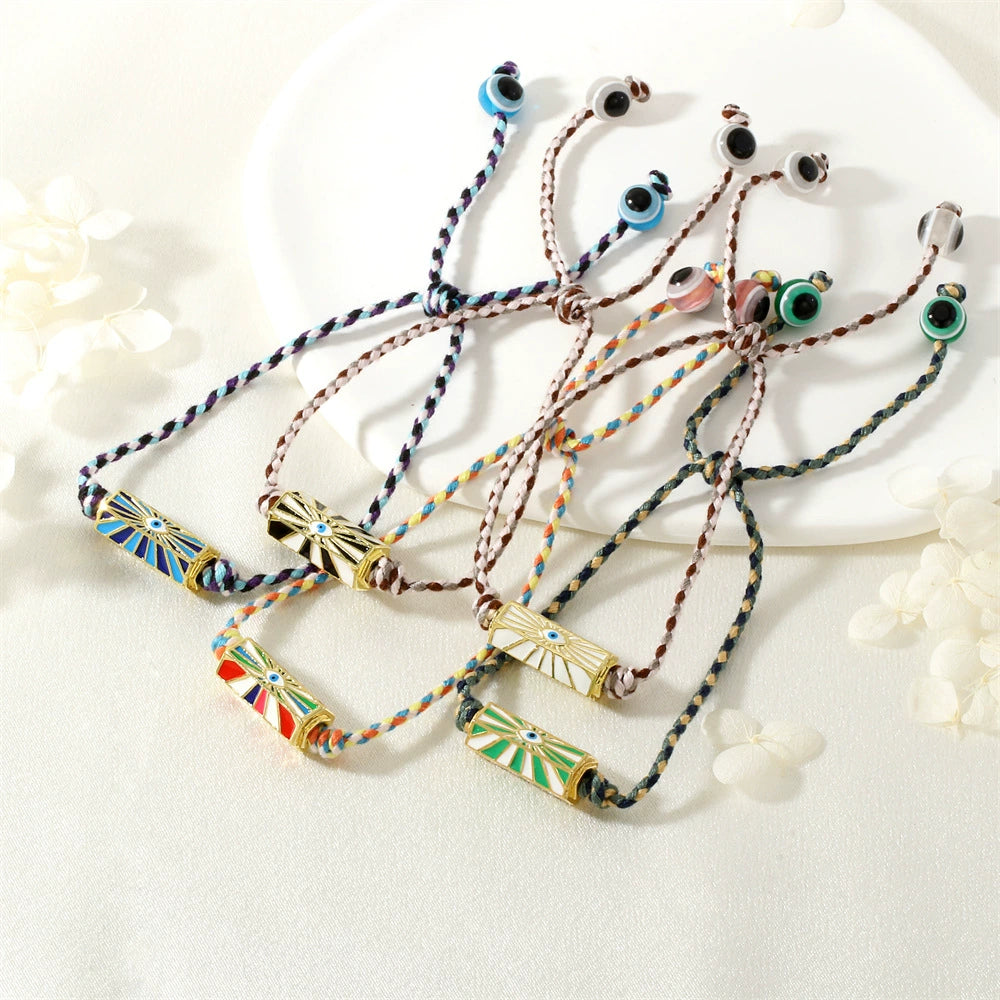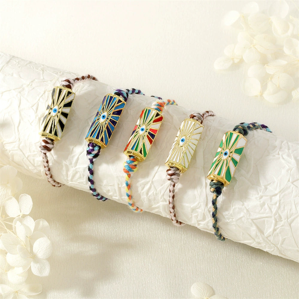 Red Rope Woven Bracelet With Demon Eye Knot Handmade Copper Plastic Bracelet In Geometric Style For Unisex