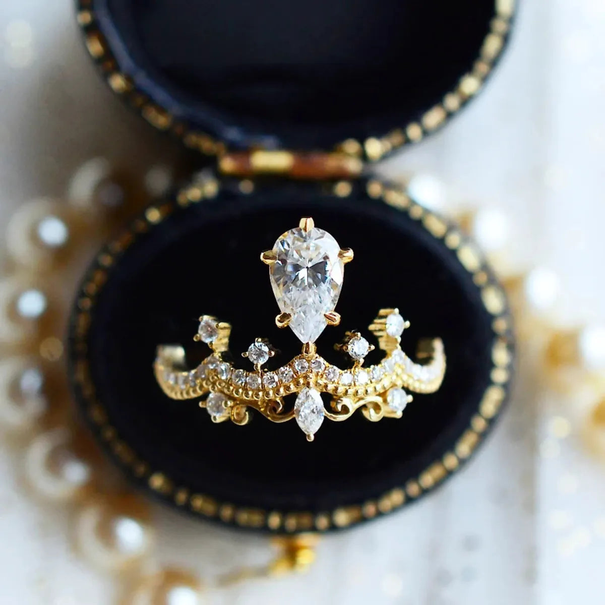 Retro Crown Copper Inlay Artificial Gemstones Rings 1 Piece