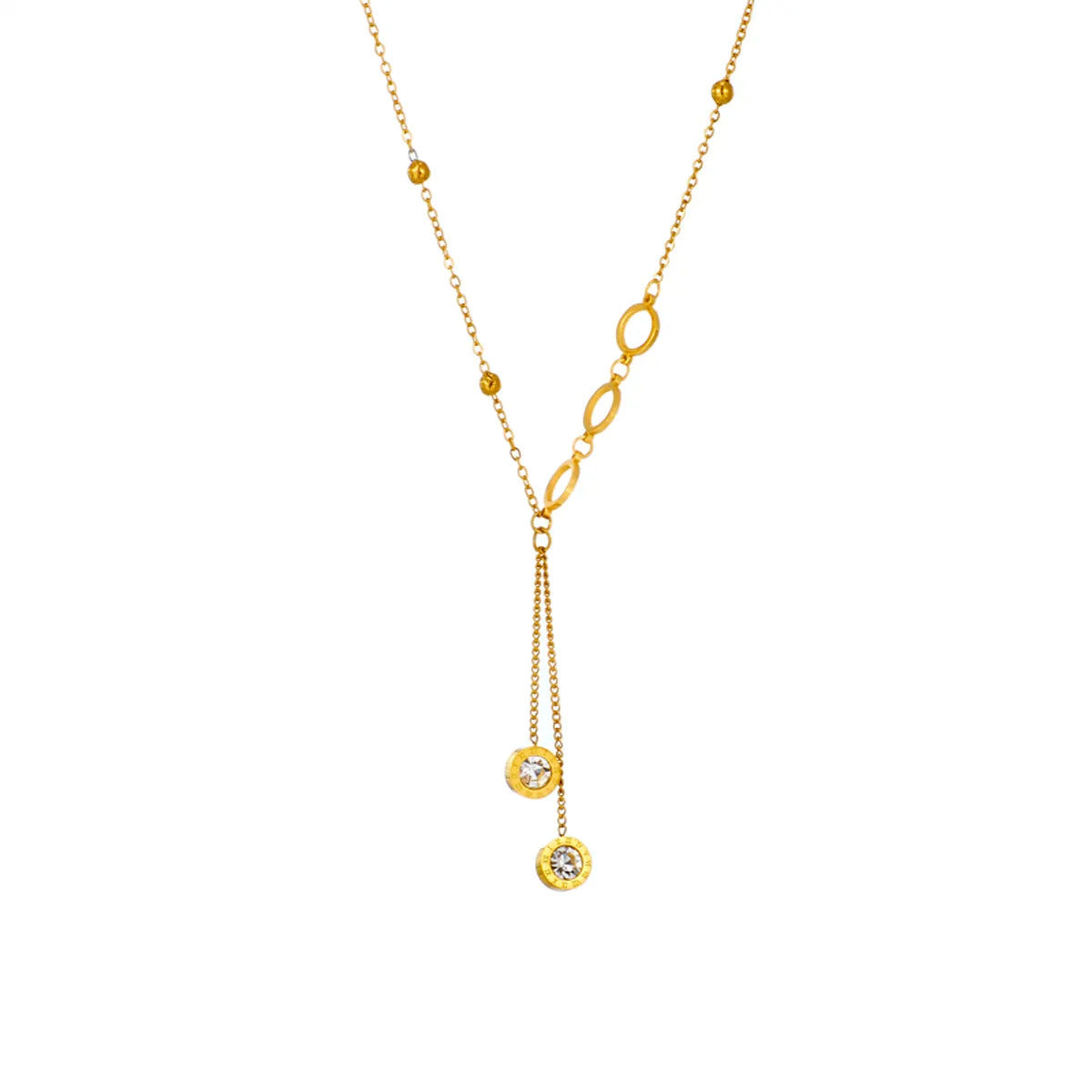 Retro Round Titanium Steel Gold Plated Inlay Zircon Pendant Necklace 1 Piece