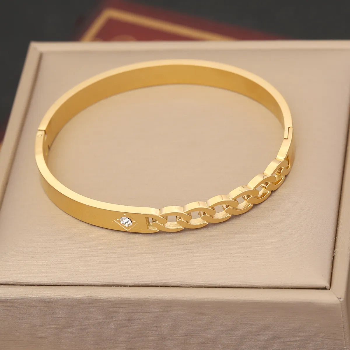 Retro Simple Style Heart Shape Eye Stainless Steel Zircon Bangle In Bulk