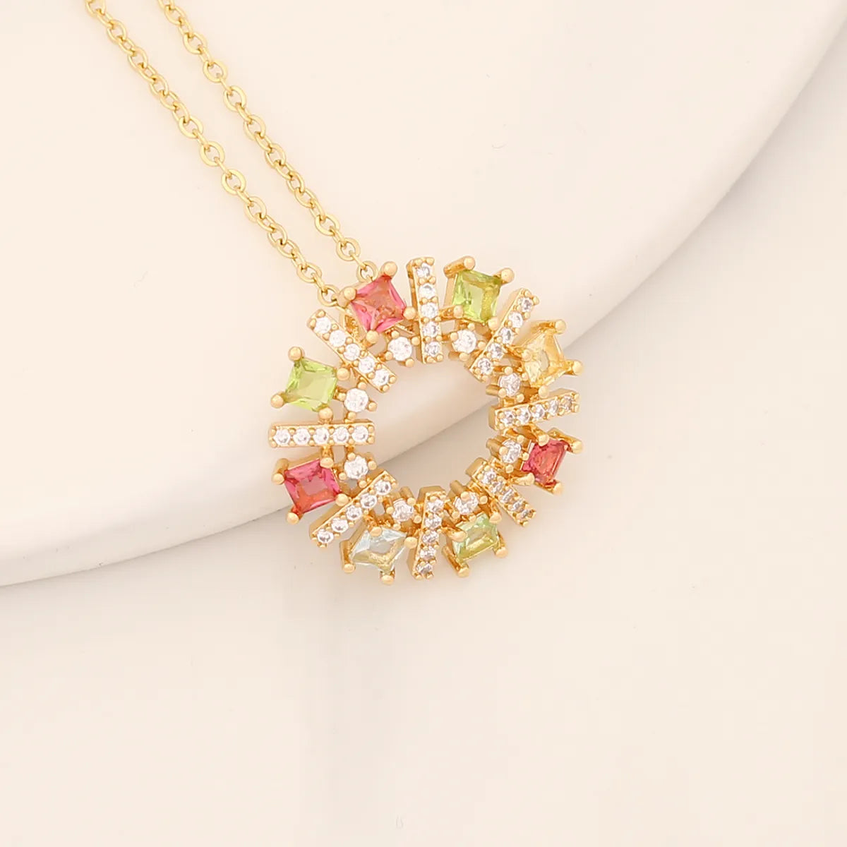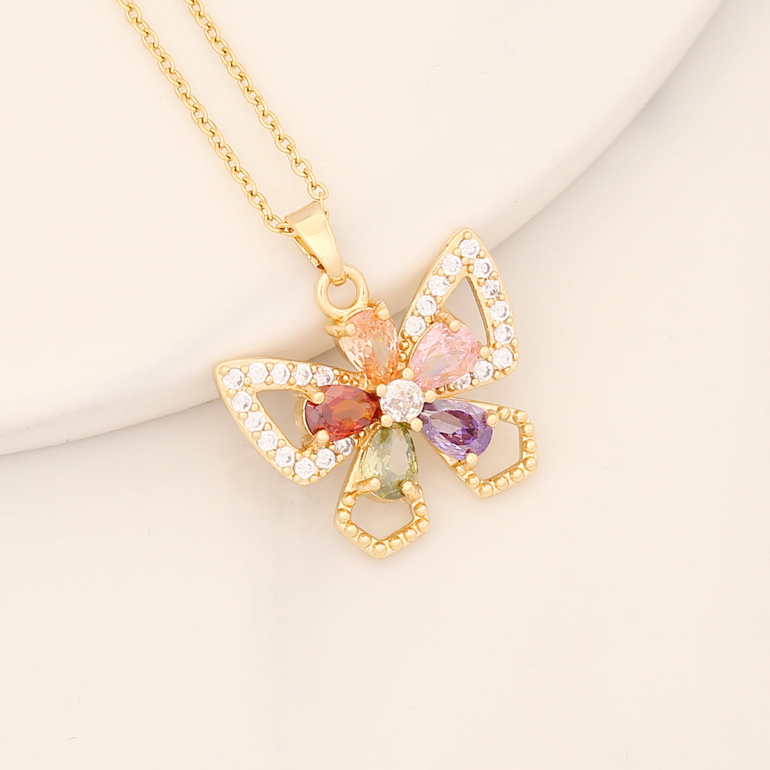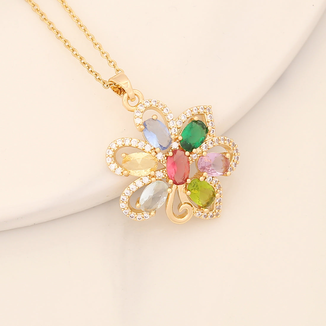 Romantic Sweet Commute Heart Shape Flower Copper Plating Inlay Zircon Pendant Necklace