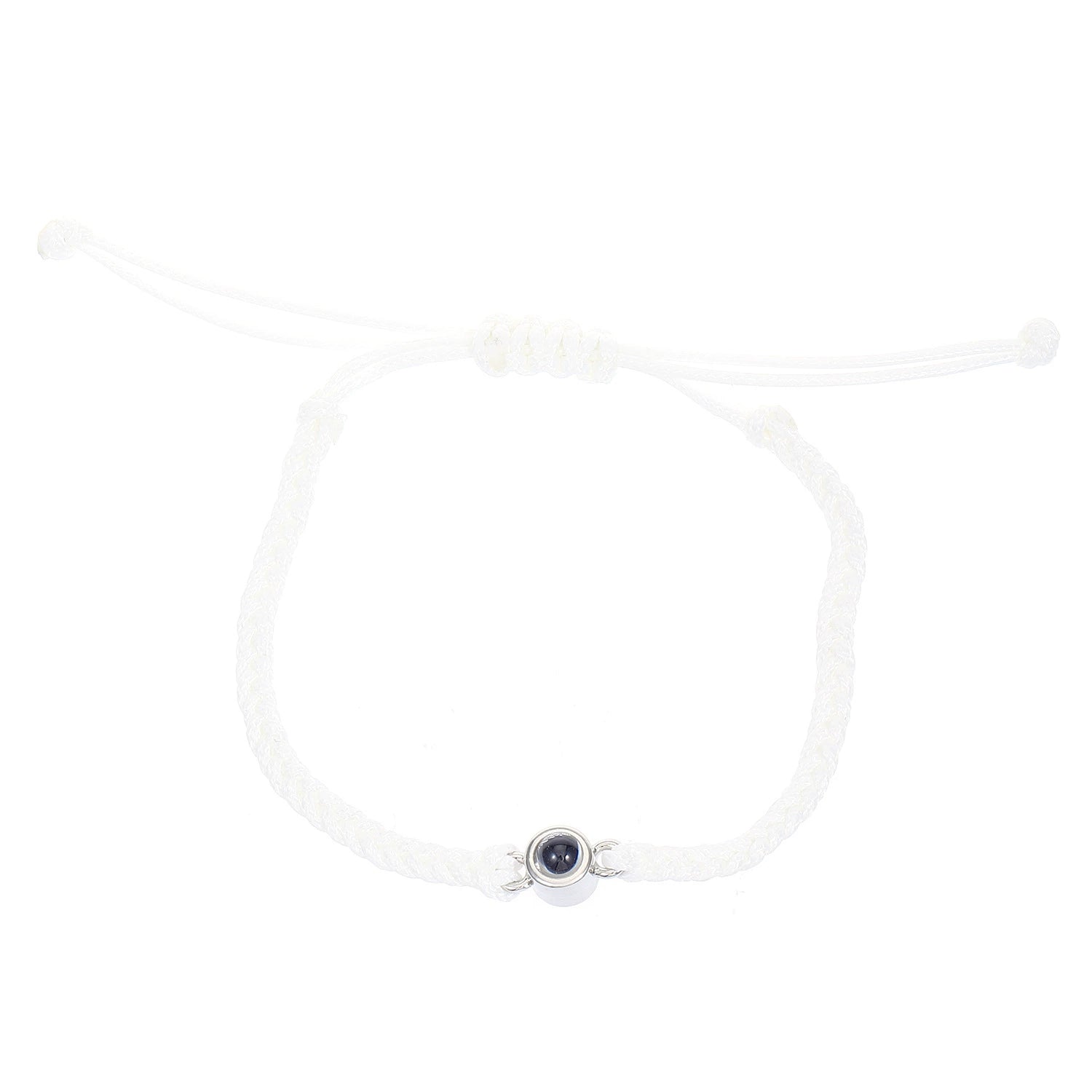Round Bead Projection Hand Woven Cord Couple Bracelet In Powder Blue Black And White