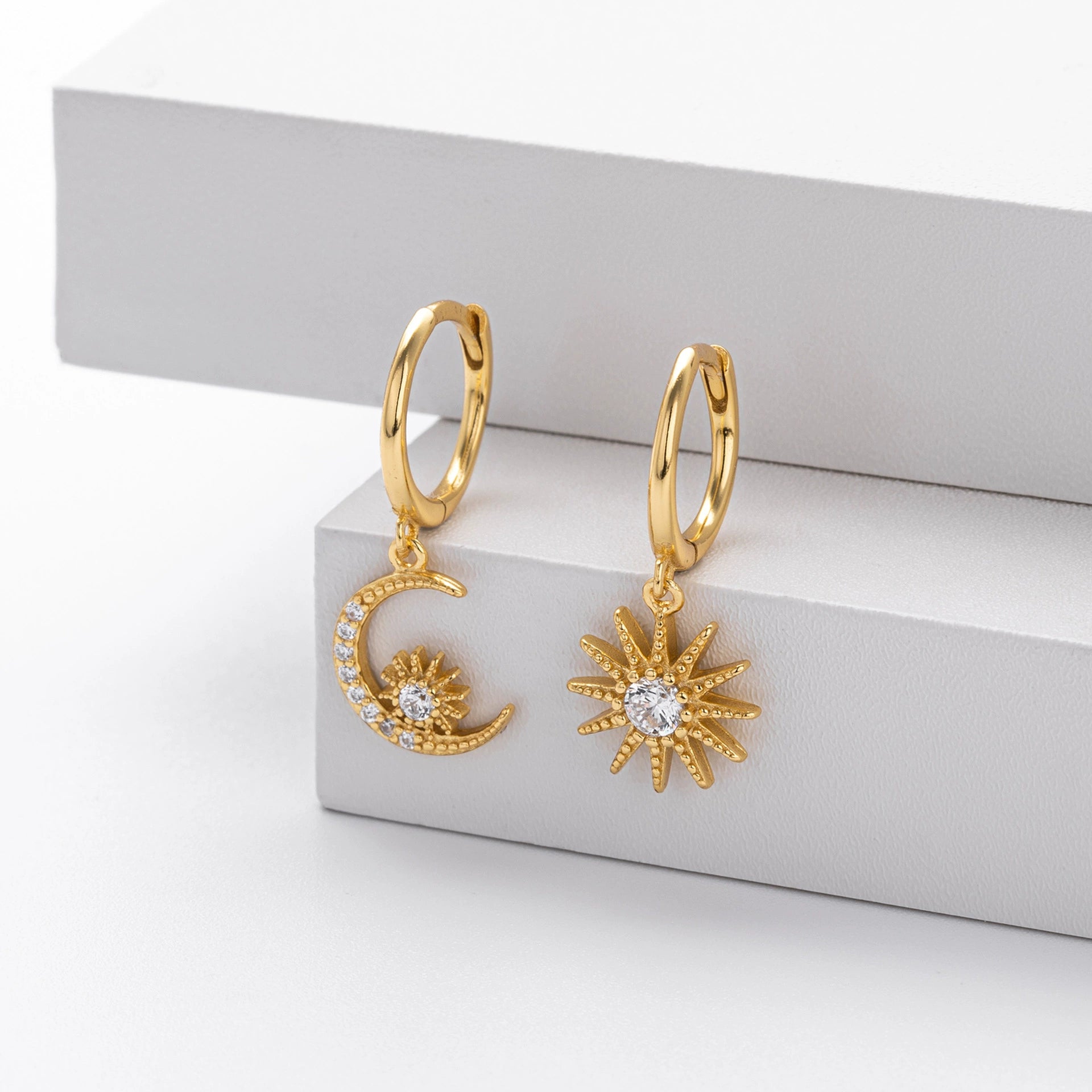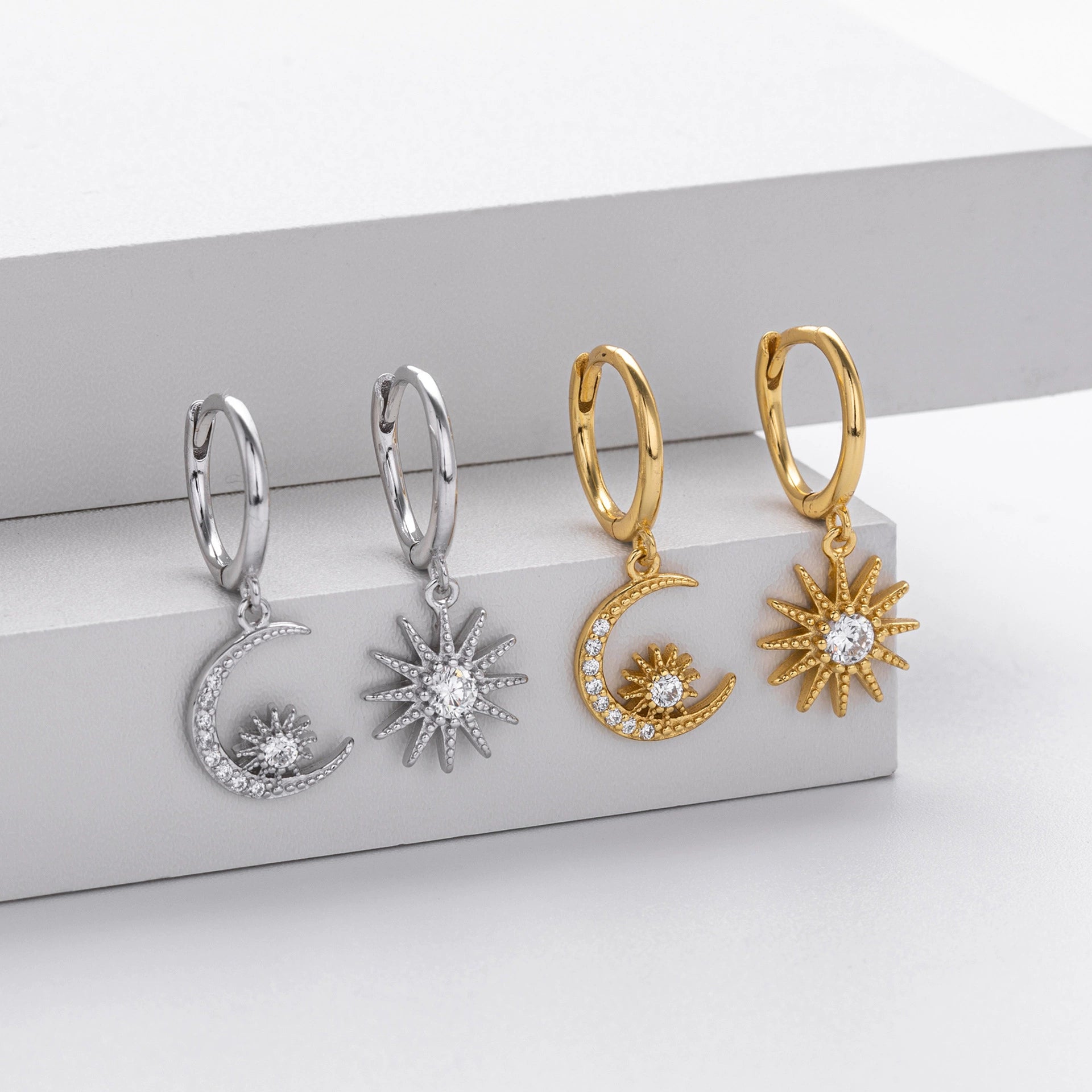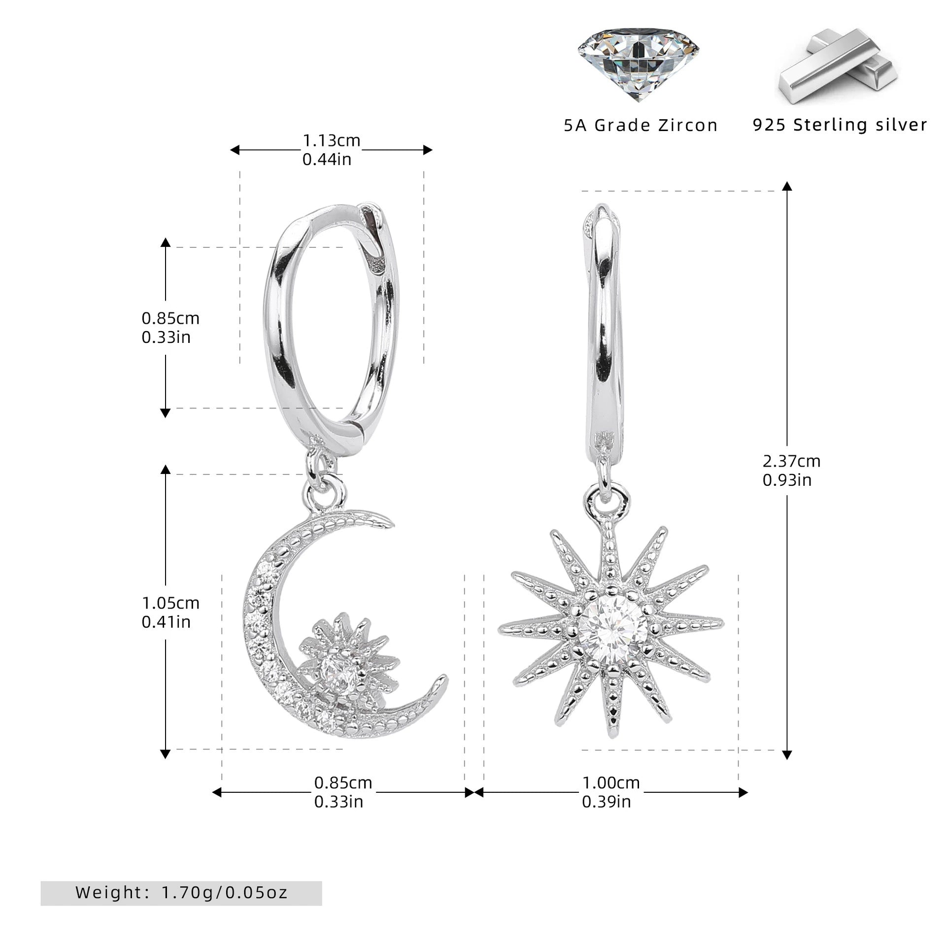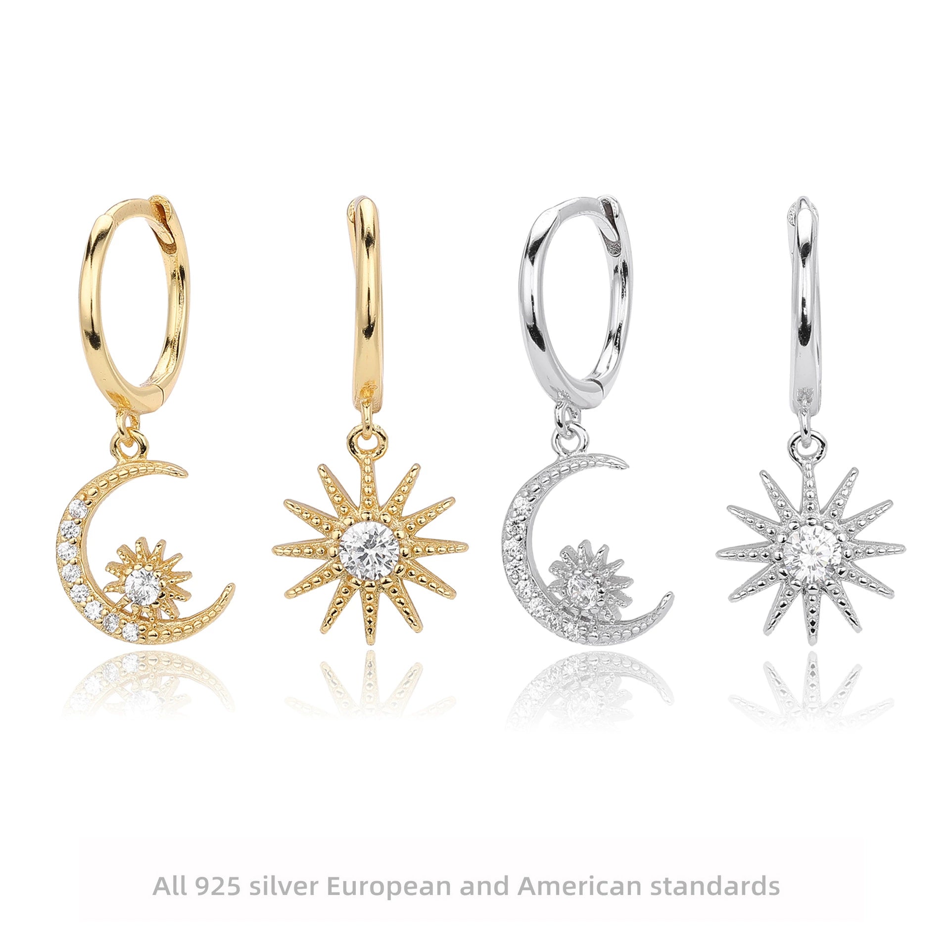 S925 Sterling Silver Fashion Star Moon Zircon Inlaid Women's Earrings