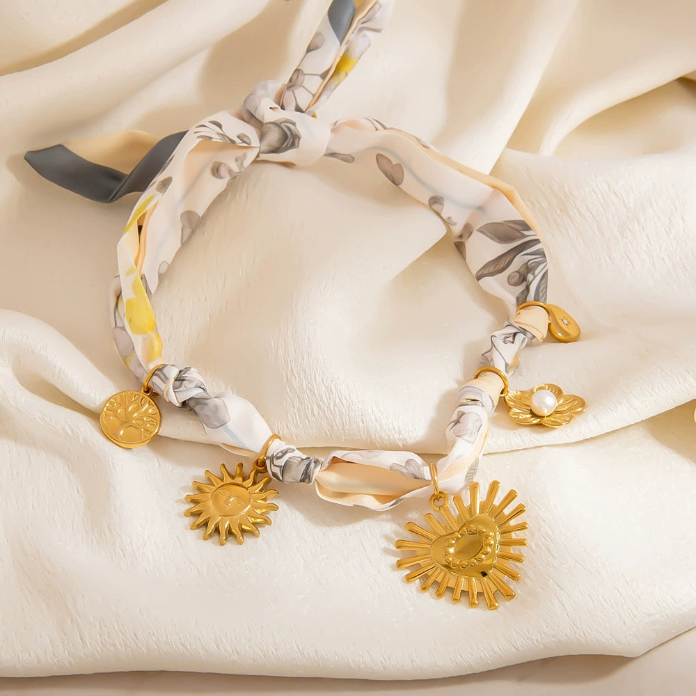 Silk Scarf Necklace Stainless Steel Heart And Flower Pendant Electroplating