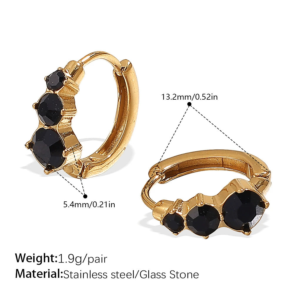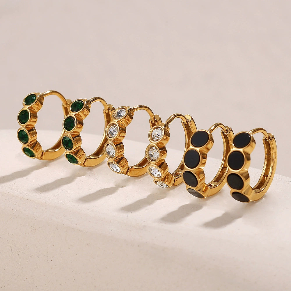 Simple Colorful Zircon Inlaid 316L Stainless Steel Electroplated Retro Earrings For Women