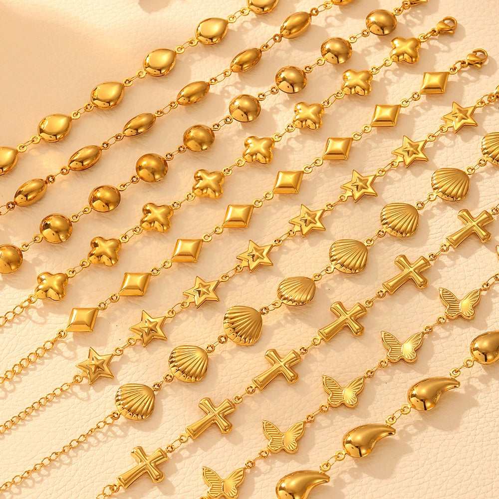 Simple Niche Geometric Circle Women's Cold Style Shell Cross Glow Hollow Titanium Steel Bracelet With Electroplating