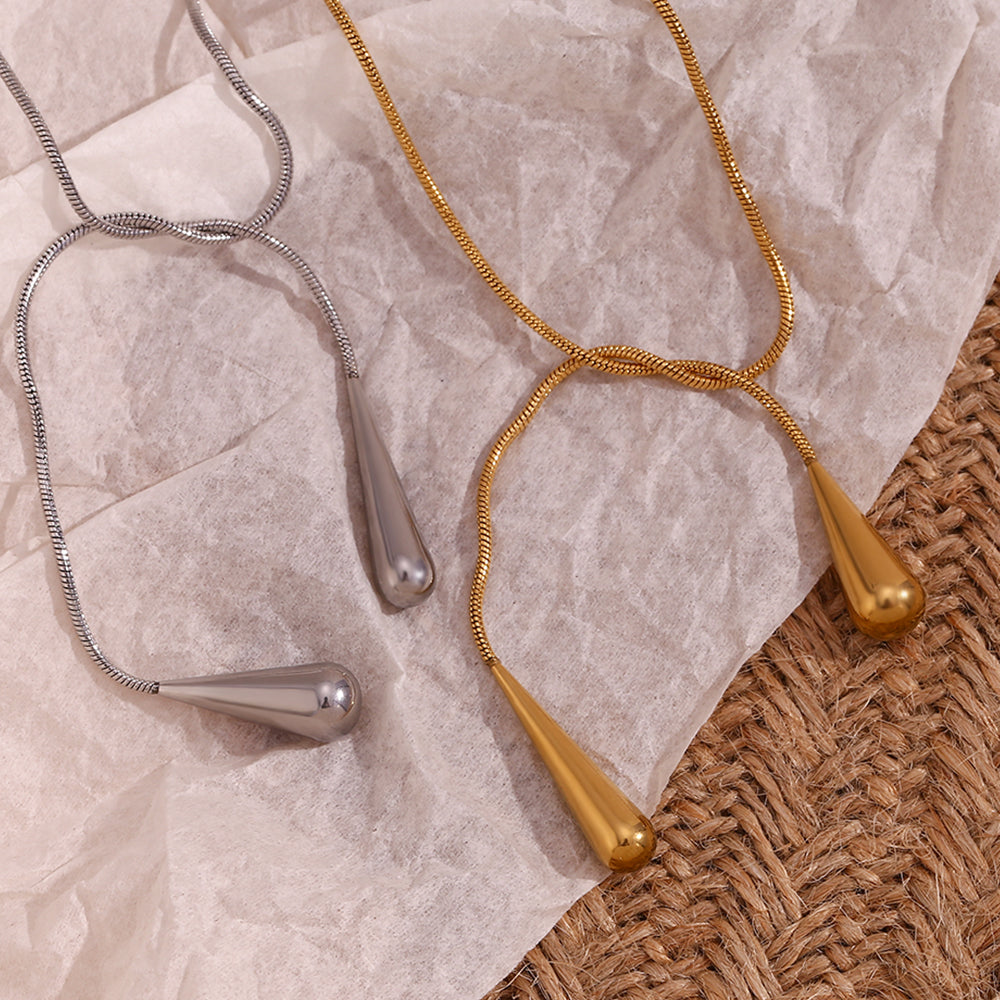 Simple Style Classic Style Water Droplets Solid Color Stainless Steel Plating 18k Gold Plated Necklace