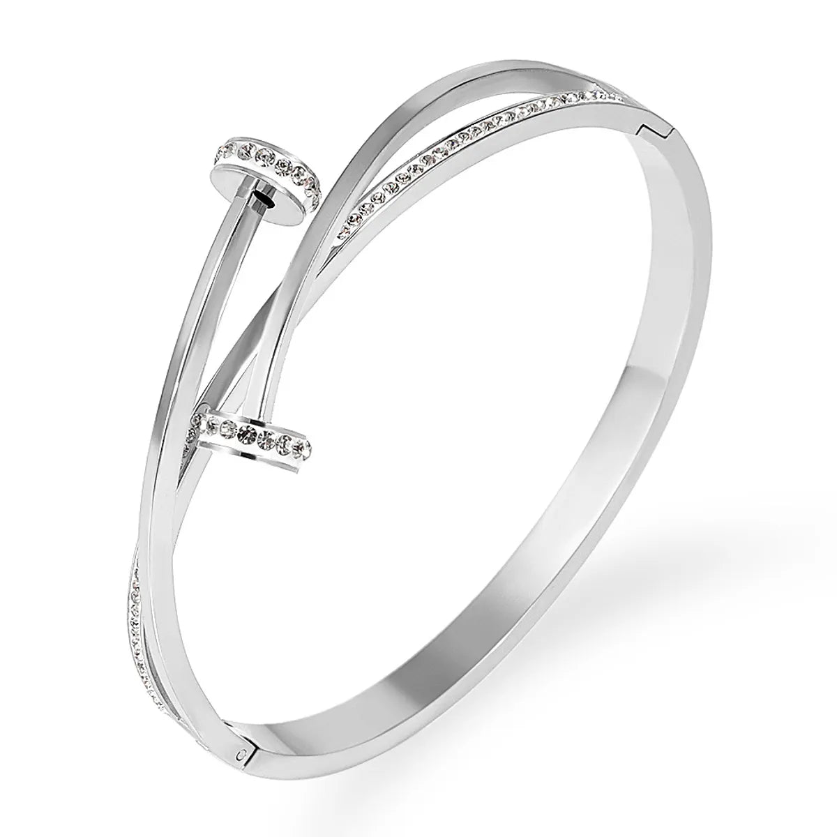 Simple Style Commute Nail Titanium Steel Plating Inlay Bangle