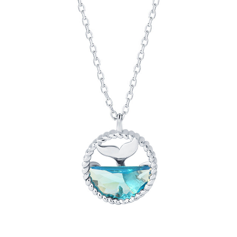 Simple Style Fish Tail Sterling Silver Inlay Zircon Pendant Necklace