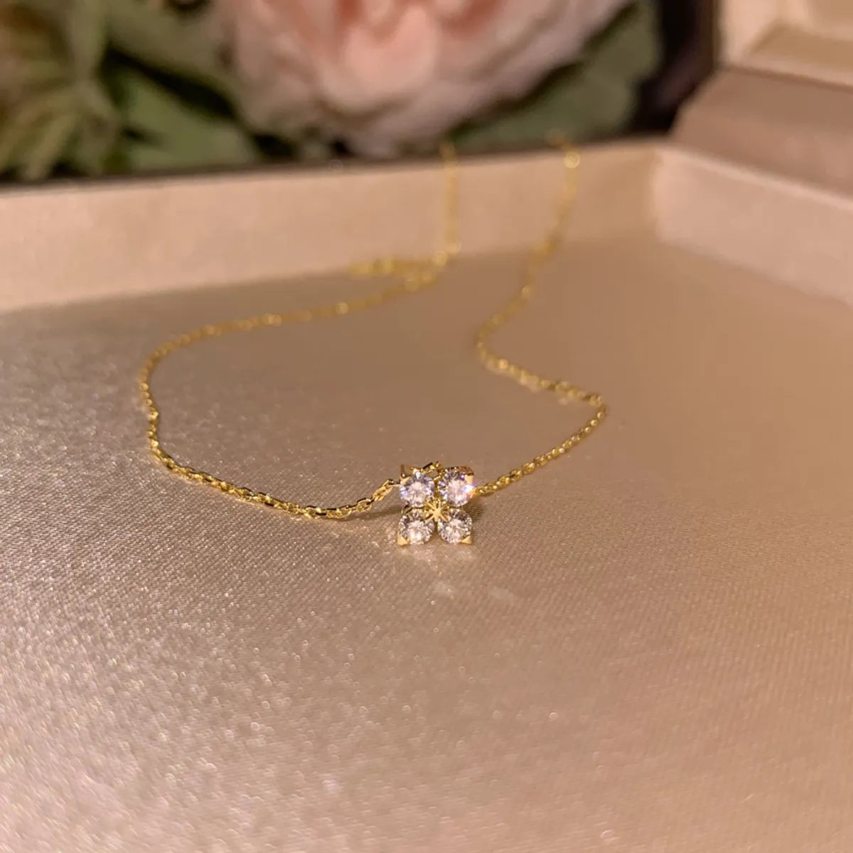 Simple Style Four Leaf Clover Sterling Silver Plating Rhinestones Pendant Necklace