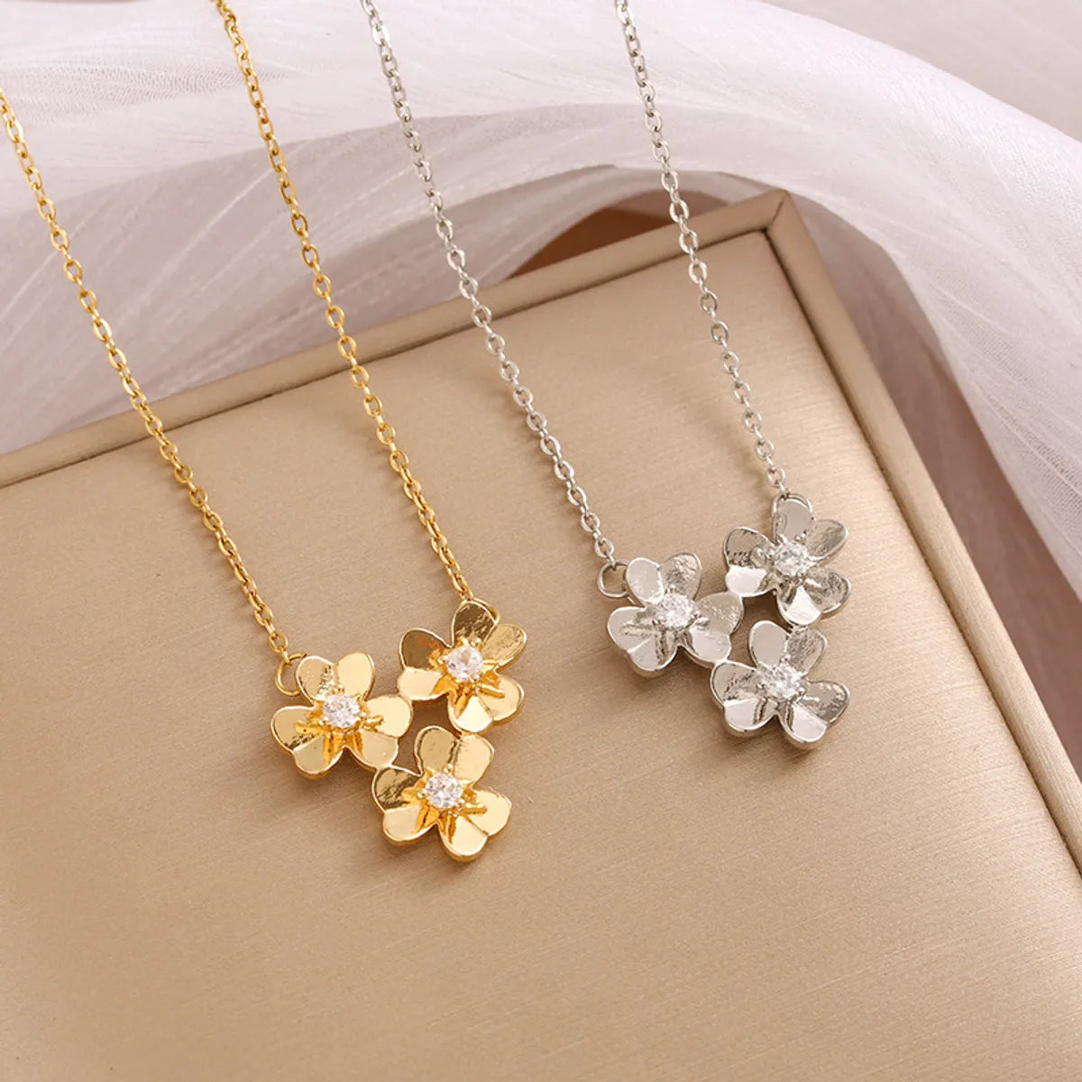 Simple Style Leaf Stainless Steel Inlay Rhinestones Pendant Necklace