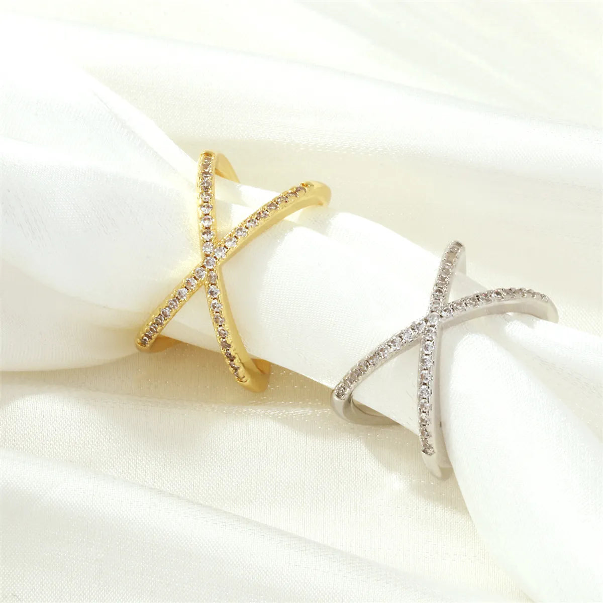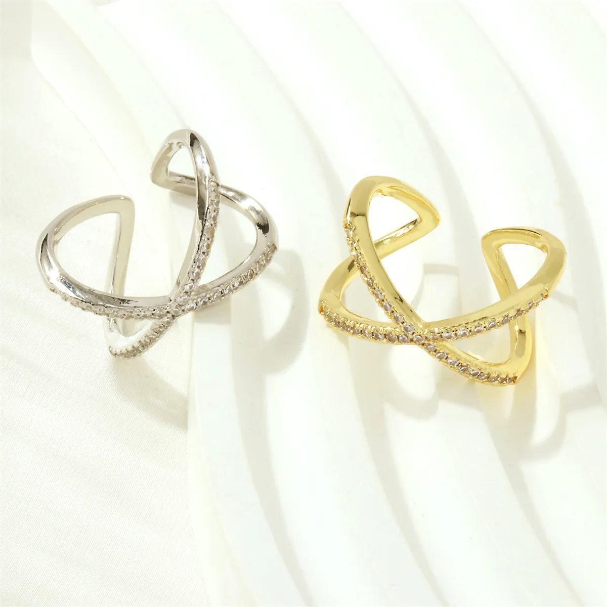 Simple Style Lines Copper 18k Gold Plated Zircon Open Rings In Bulk
