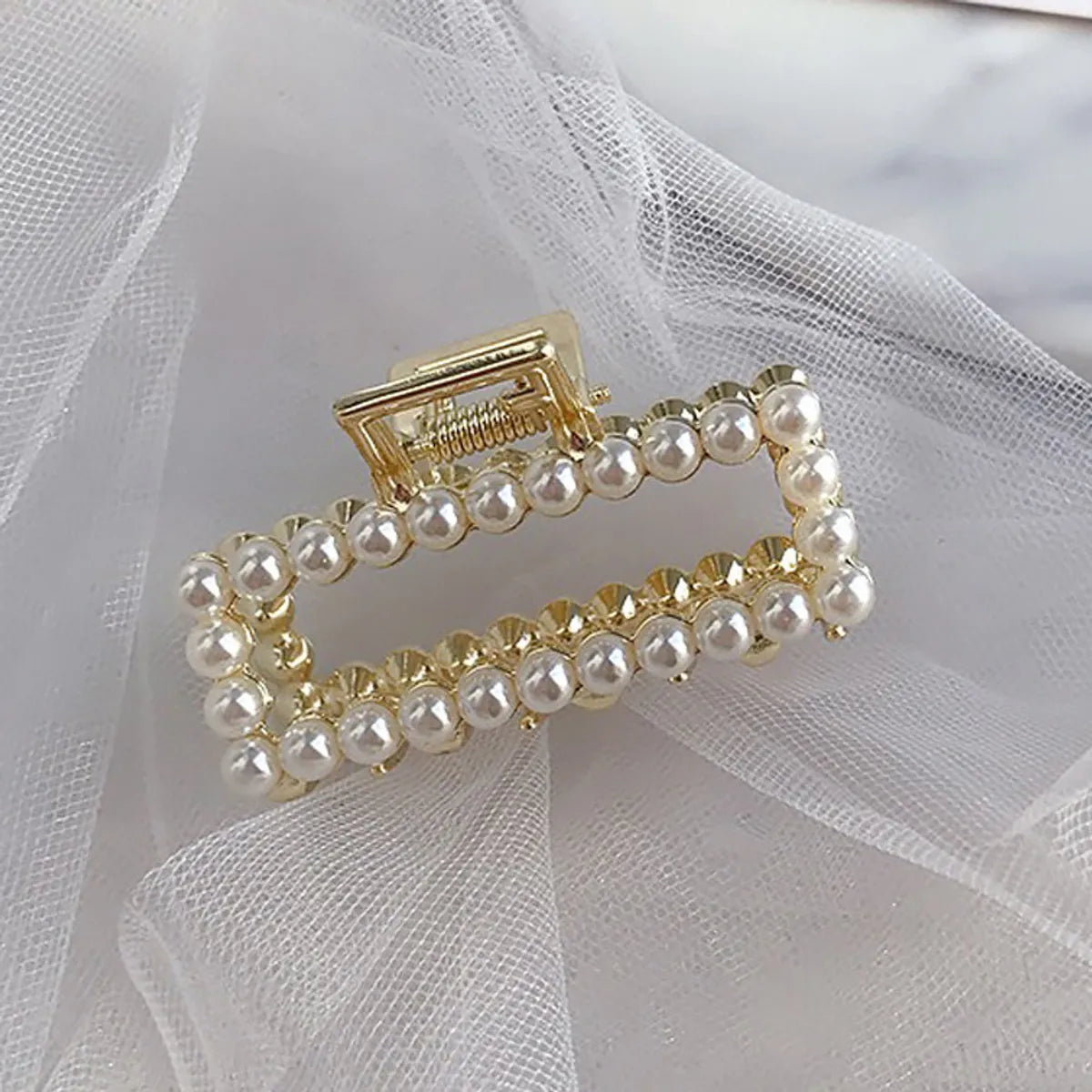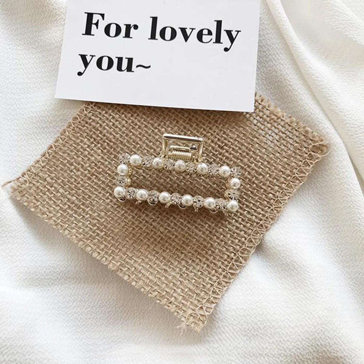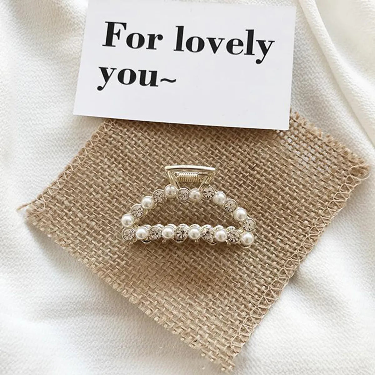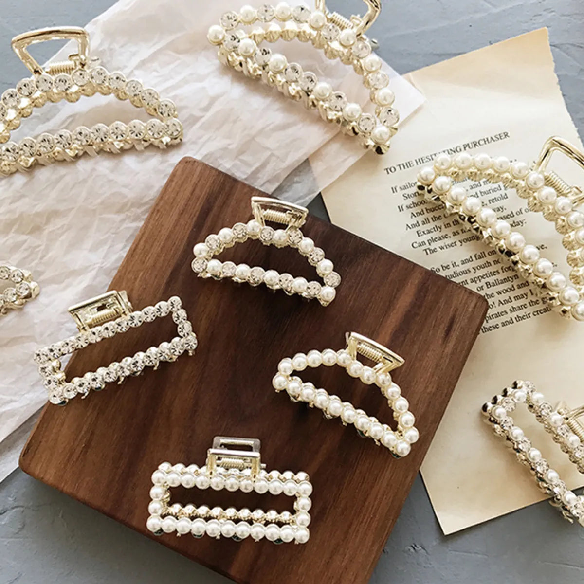 Simple Style Semicircle Metal Hollow Out Inlay Rhinestones Pearl Hair Claws 1 Piece