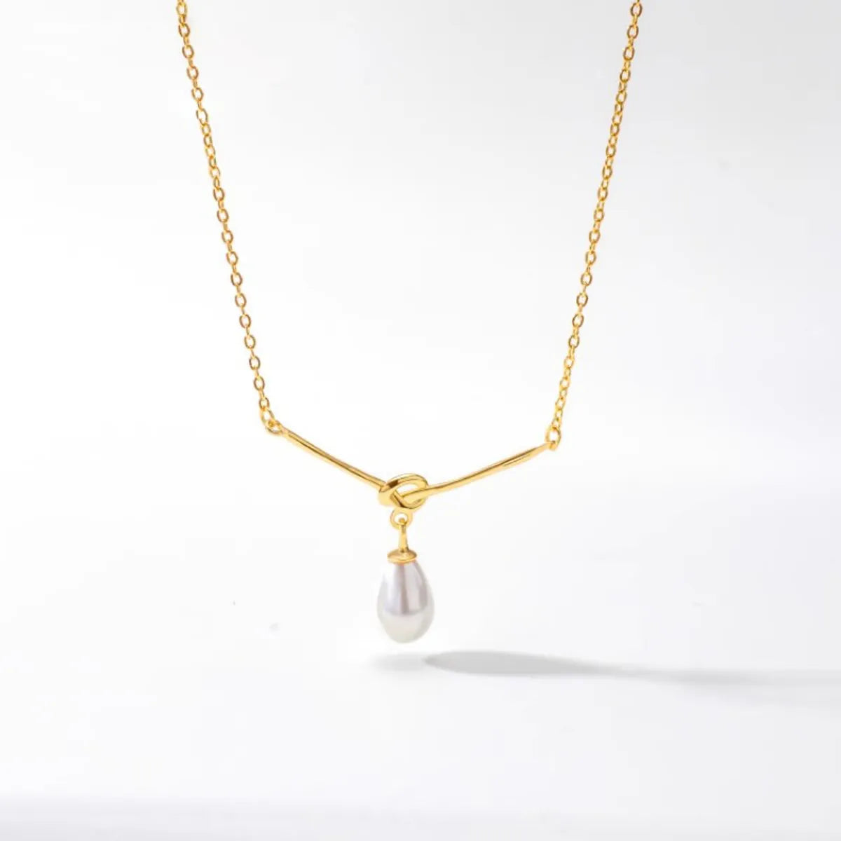 Simple Style Water Droplets Titanium Steel Polishing Plating Inlay Pearl Pendant Necklace
