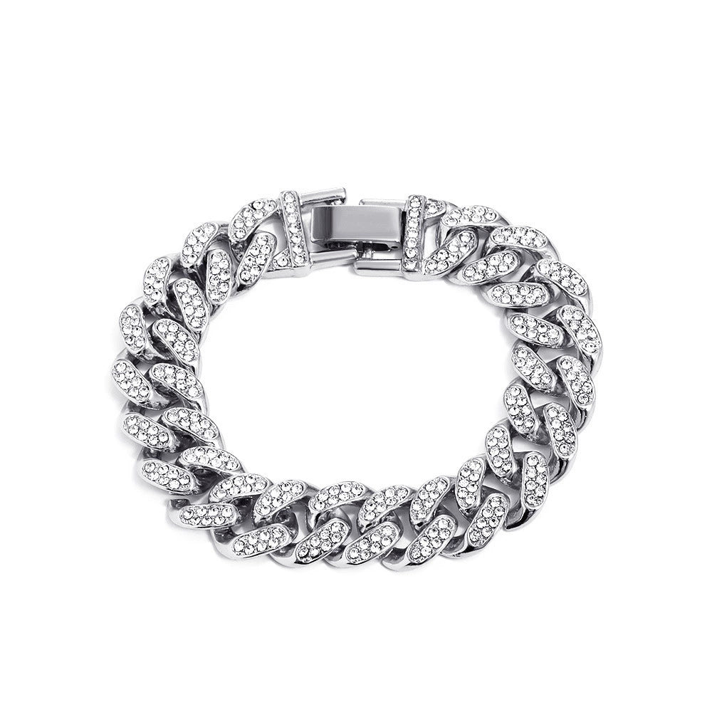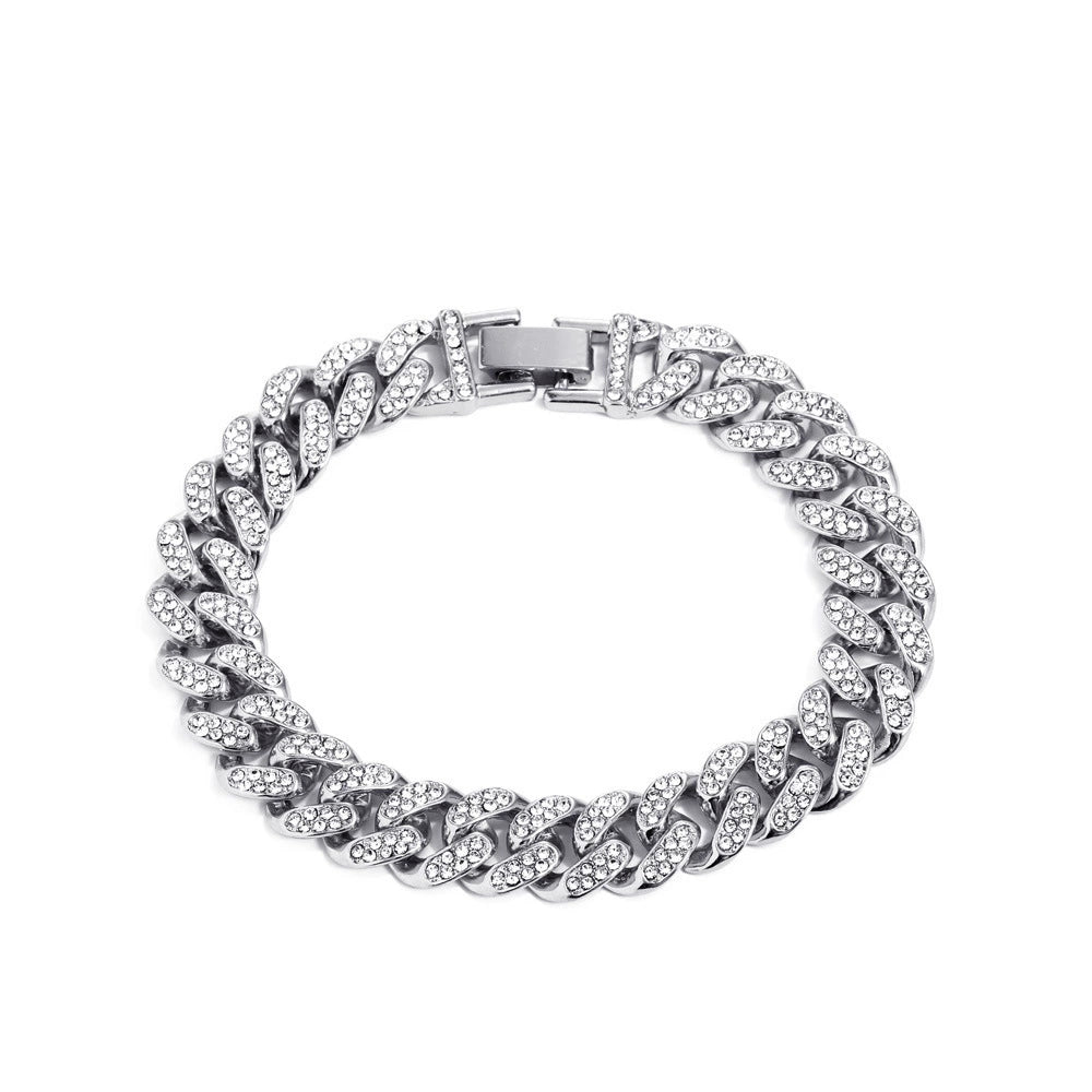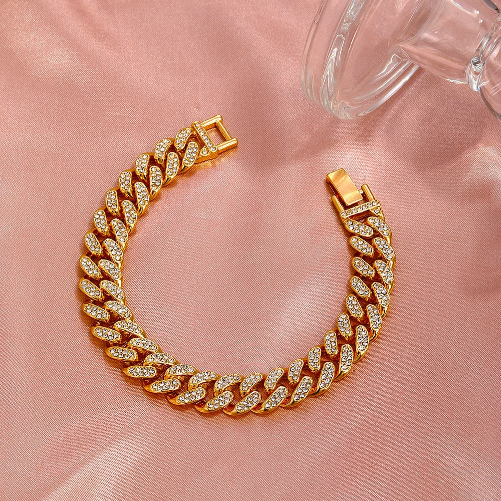 Simple Thick Chain Bracelet In Alloy With Geometric Pattern For Unisex Hip Hop Punk Style Diamond Detailed
