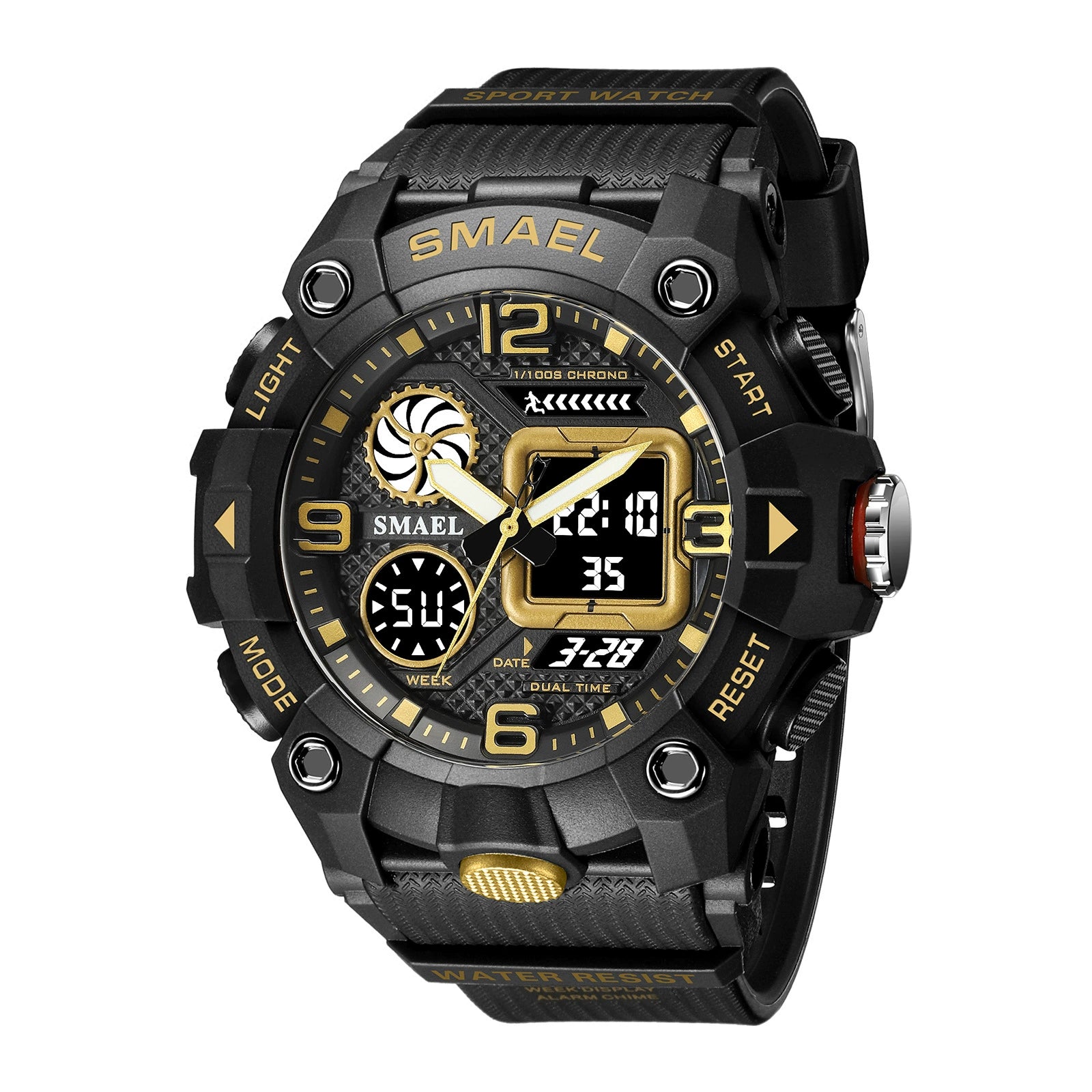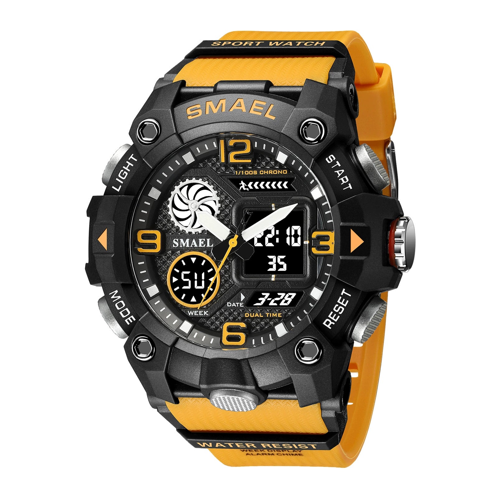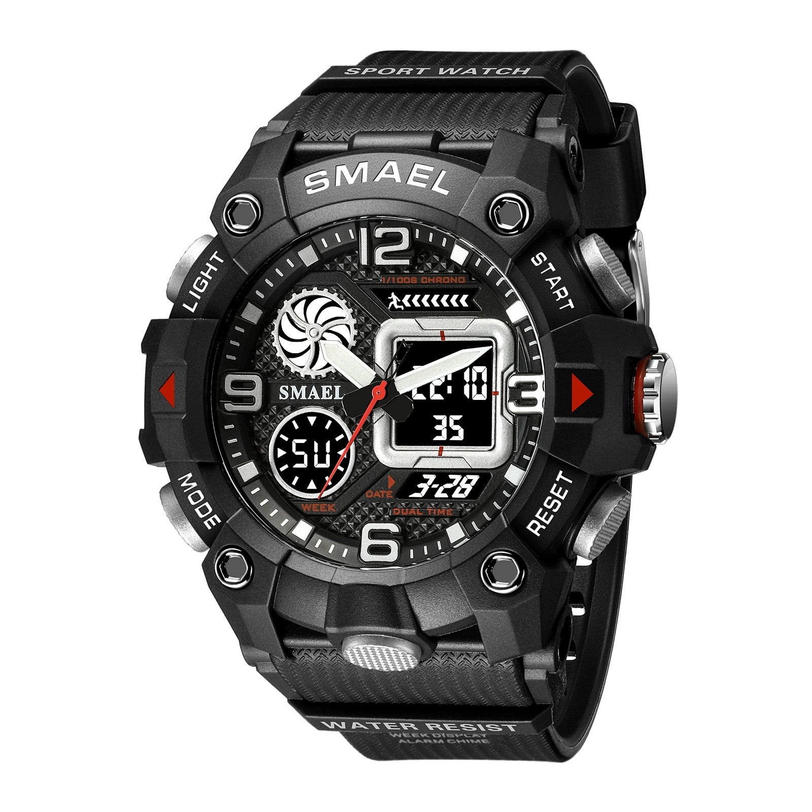 Sports Electronic Watch Plastic Strap Metal Case Round Dial For Male