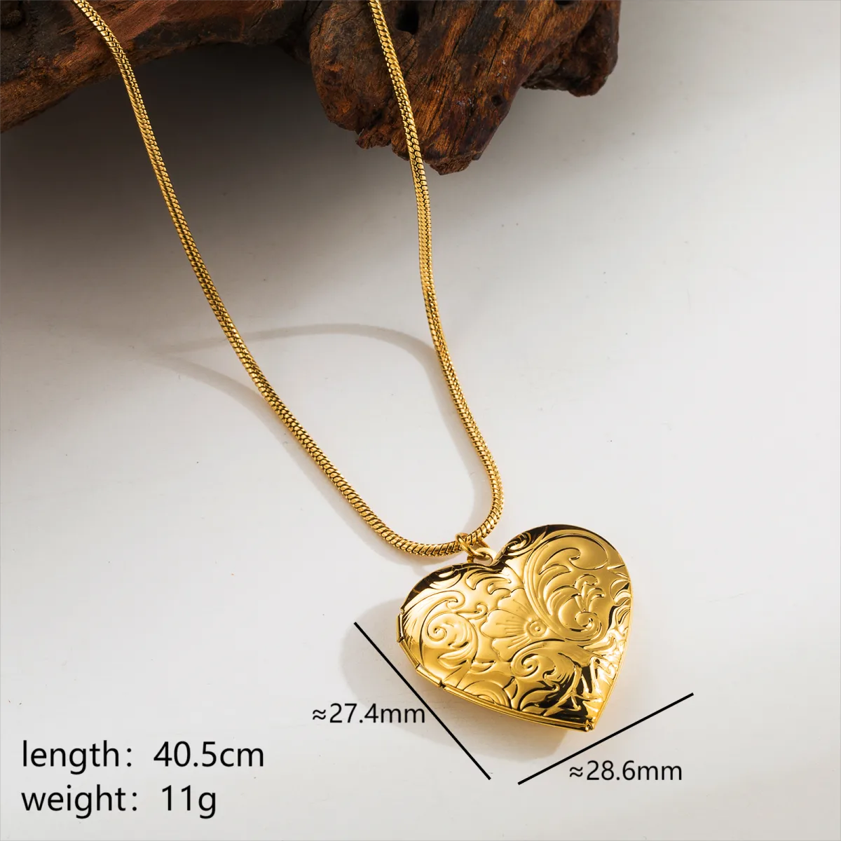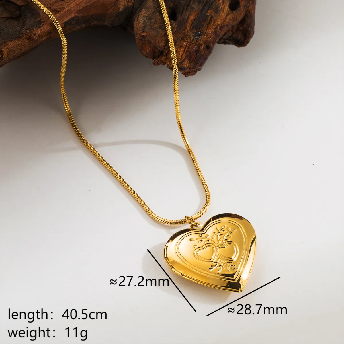 Stainless Steel 18K Gold Plated Handmade Modern Style Simple Style Heart Shape Pendant Necklace Locket Necklace