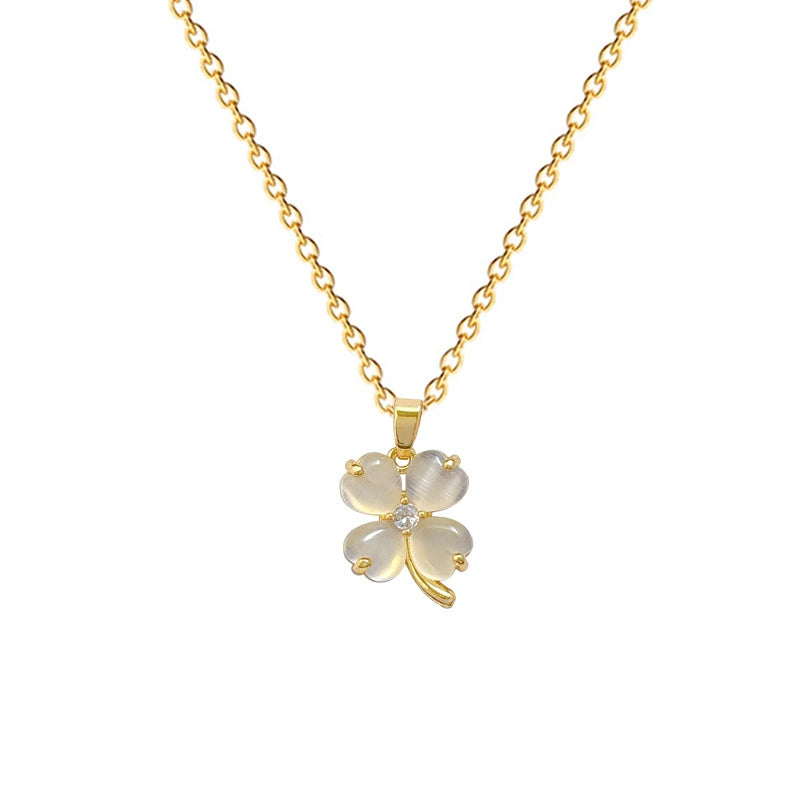 Stainless Steel Cat's Eye Lucky Grass Animal Zodiac Cartoon Style Unisex Diamond Necklace