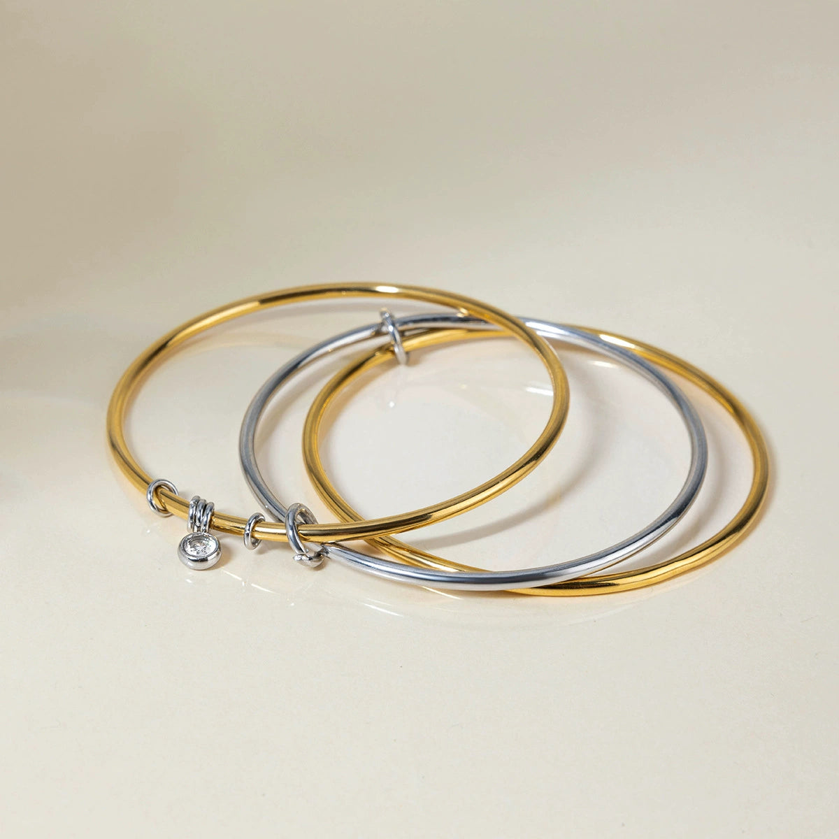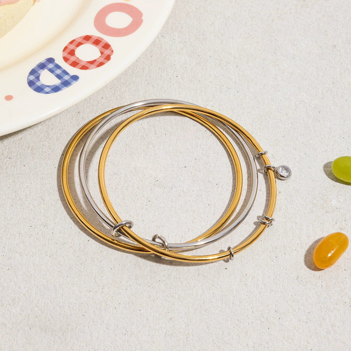 Stainless Steel Electroplated Plain Ring Stacked Threecircle Original Design Geometric Women's Bracelet