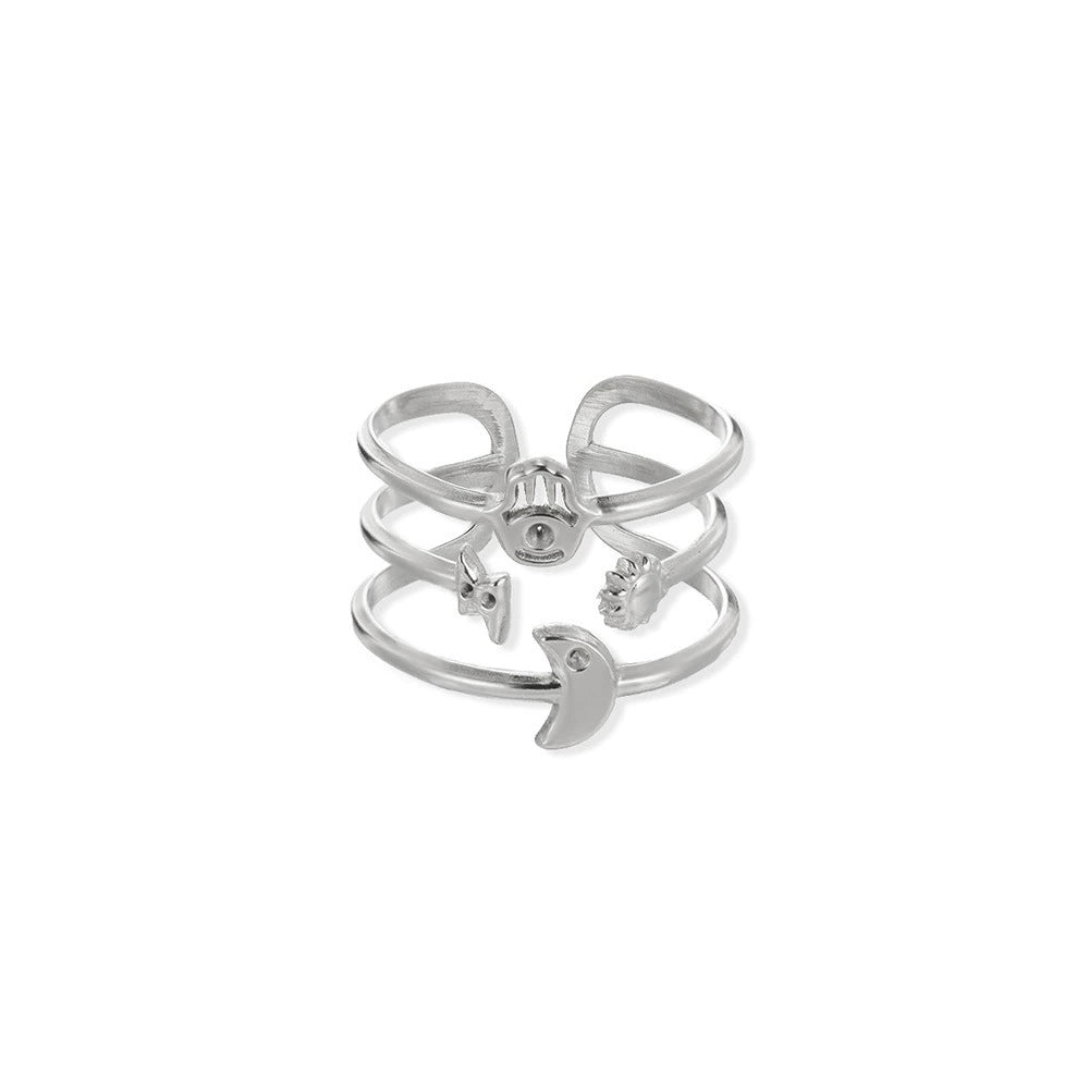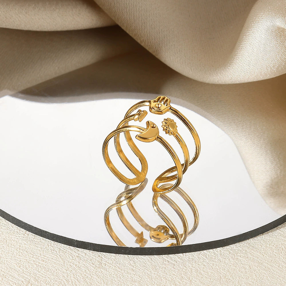 Stainless Steel Star Moon Geometric Constellation Electroplated Open Ring