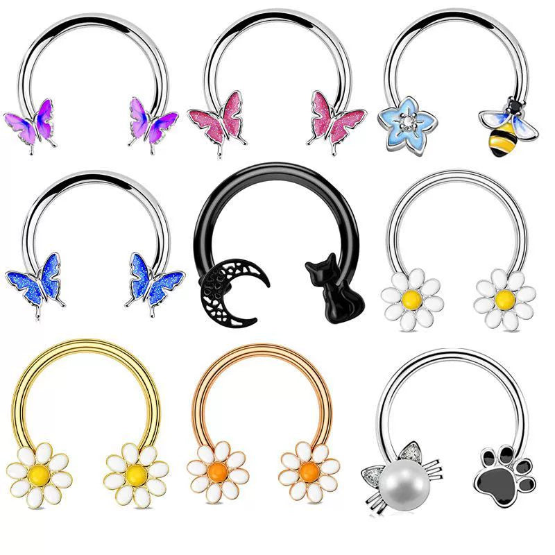 Stainless Steel Star Pattern Electroplated Nose Ring Ear Bone Ring Piercing Horseshoe Ring