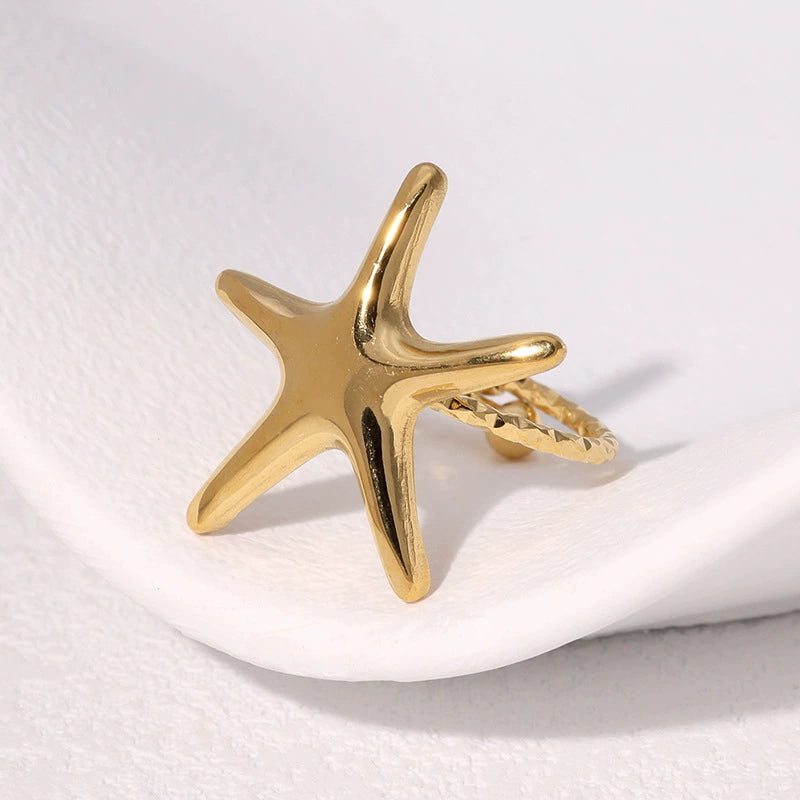 Stainless Steel Star Ring For Women Light Luxury Nonfading Electroplated Highend Jewelry