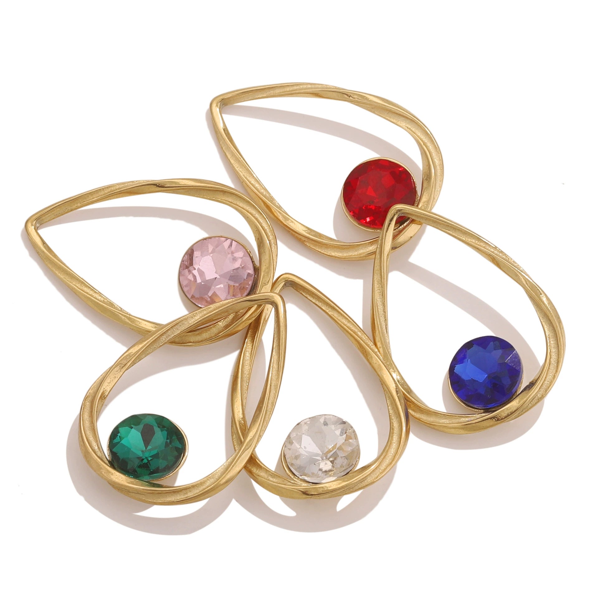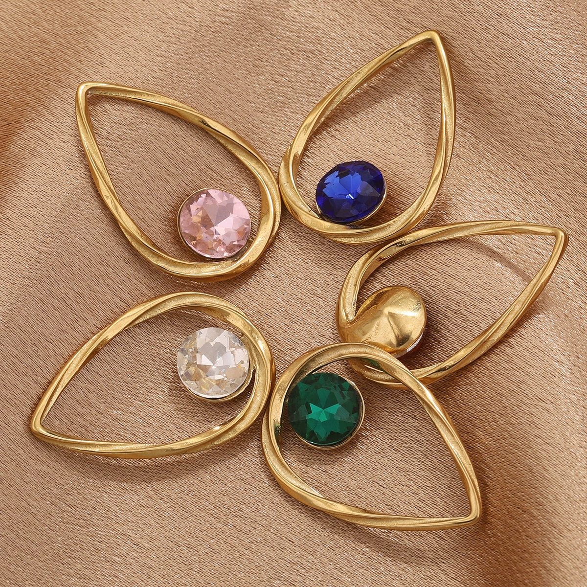 Stainless Steel Water Drop Frame Fish Pattern Crystal Pendant Electroplated Titanium Steel Earrings And Necklace Pendant Accessories