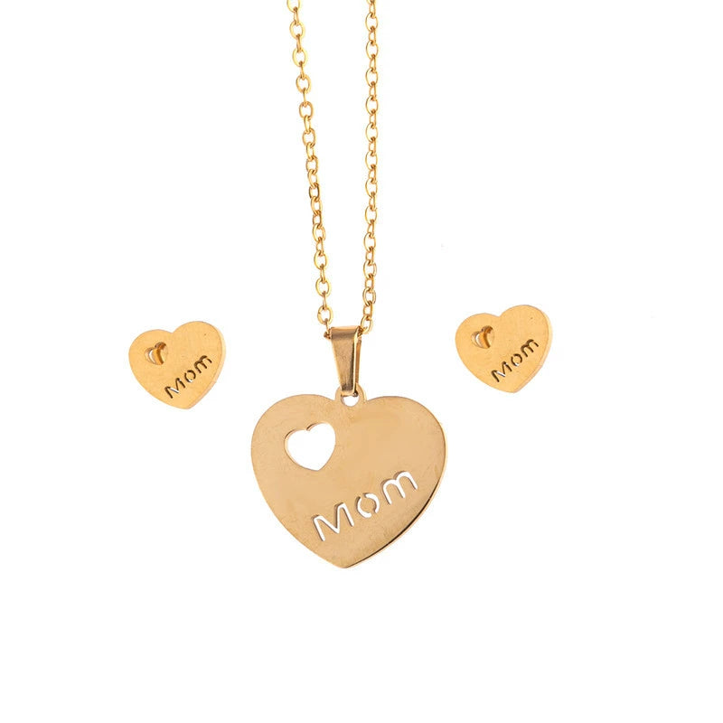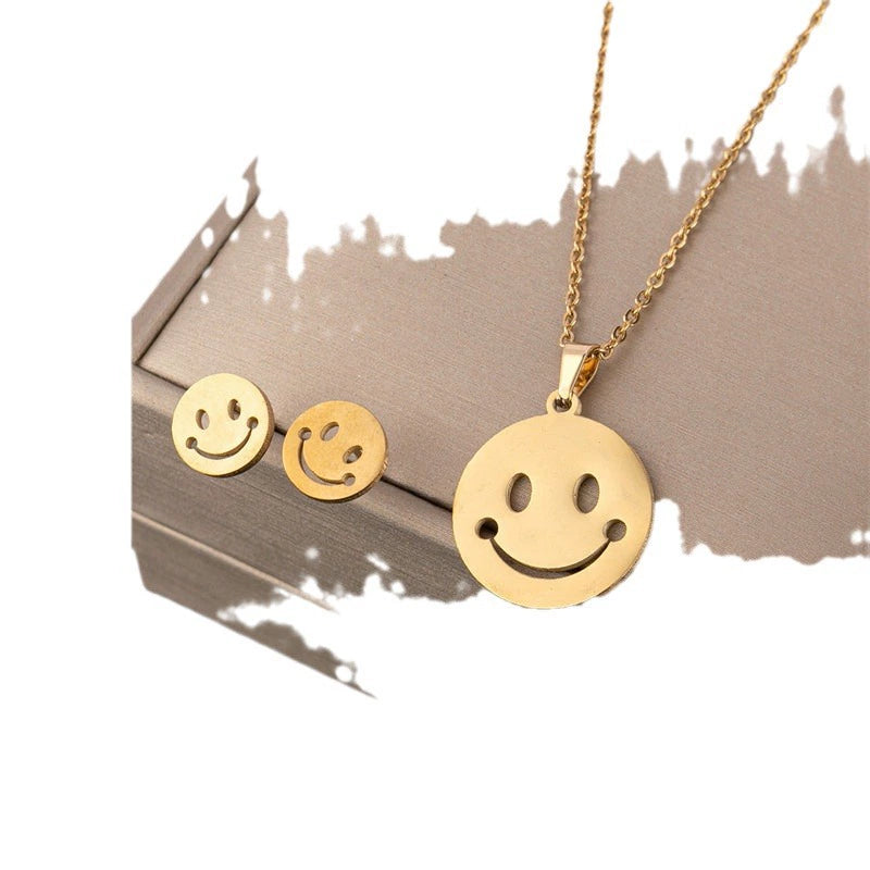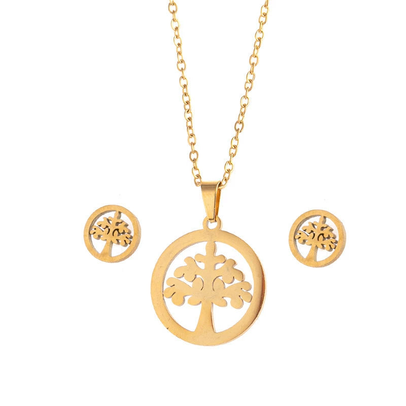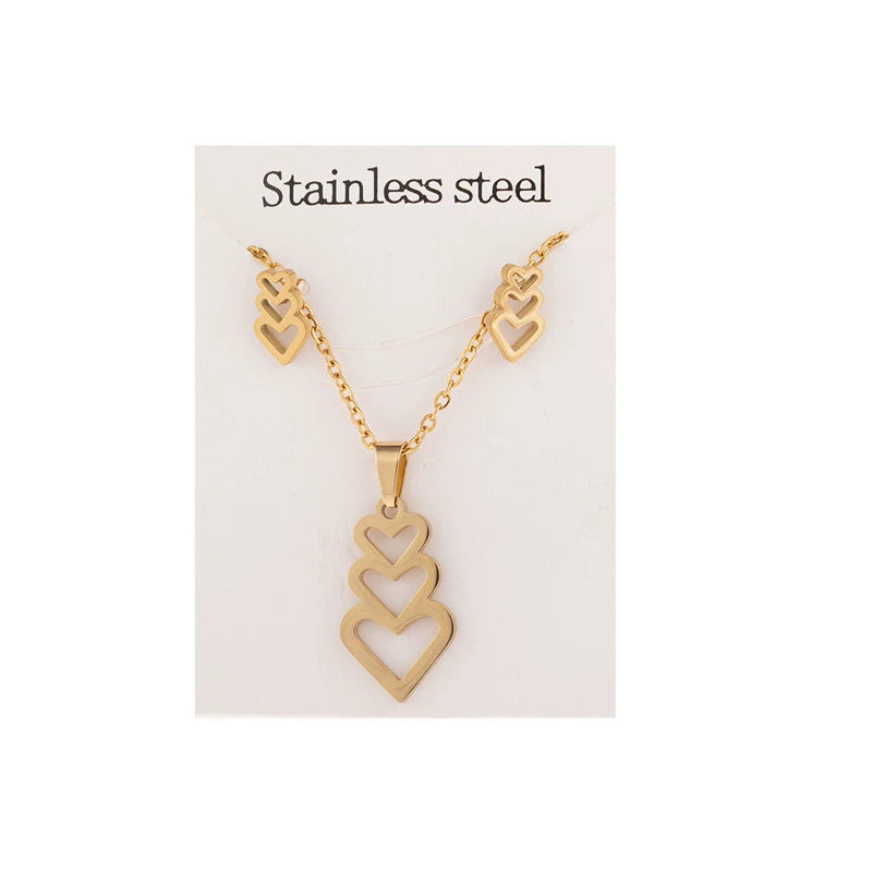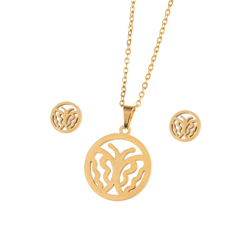 Stainless Steel Women's Earrings Necklace Threepiece Set With Crown Lotus Hollow Butterfly Cross Pattern Electroplated