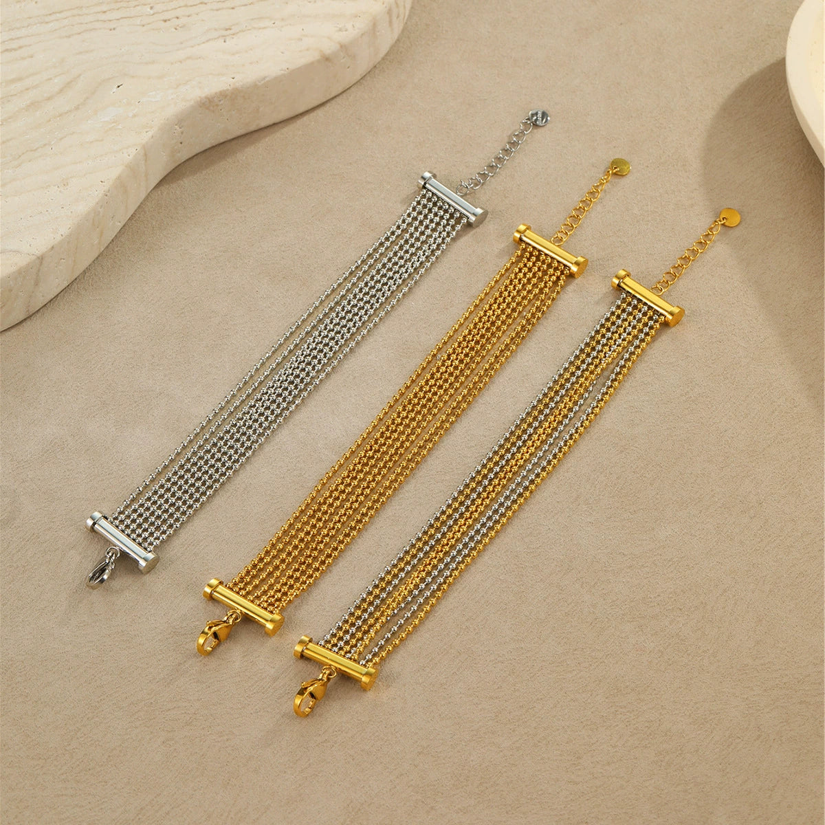 Stainless Steel Women's Fashion Geometric Multilayer Tassel Bracelet With Electroplating