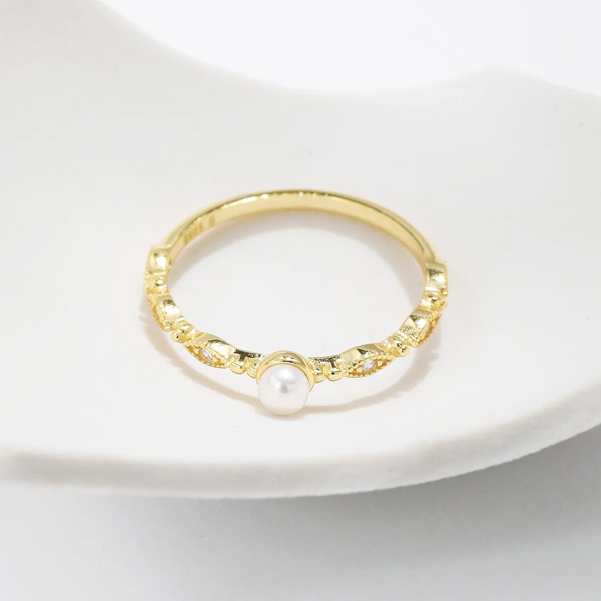 Sterling Silver 14K Gold Plated Elegant Glam Sweet Epoxy Inlay Geometric Artificial Pearls Crystal Rings