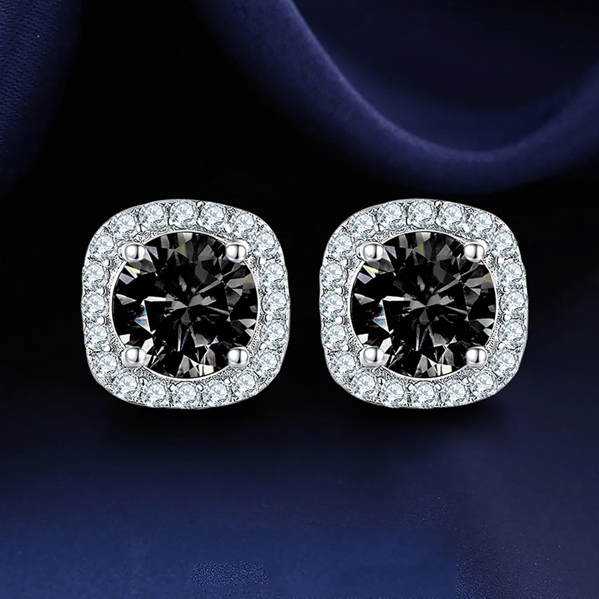 Sterling Silver 18K Gold Plated Inlay Geometric Moissanite Ear Studs