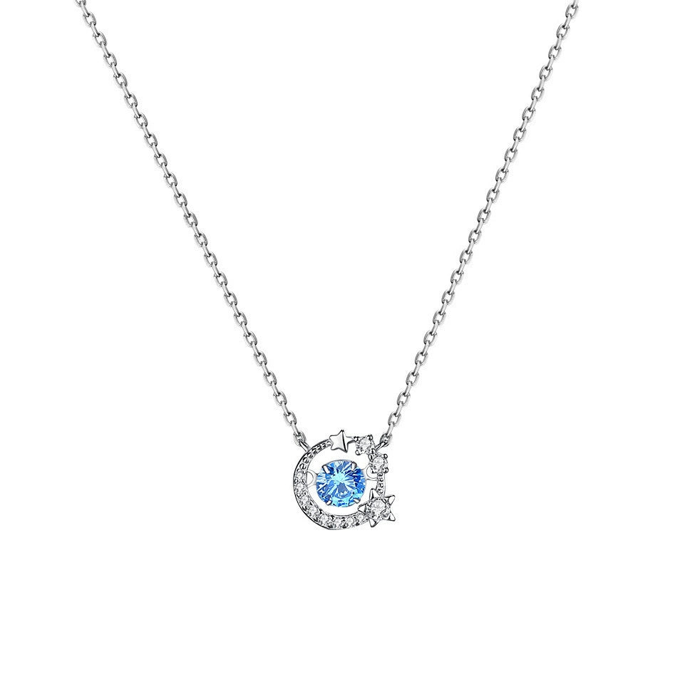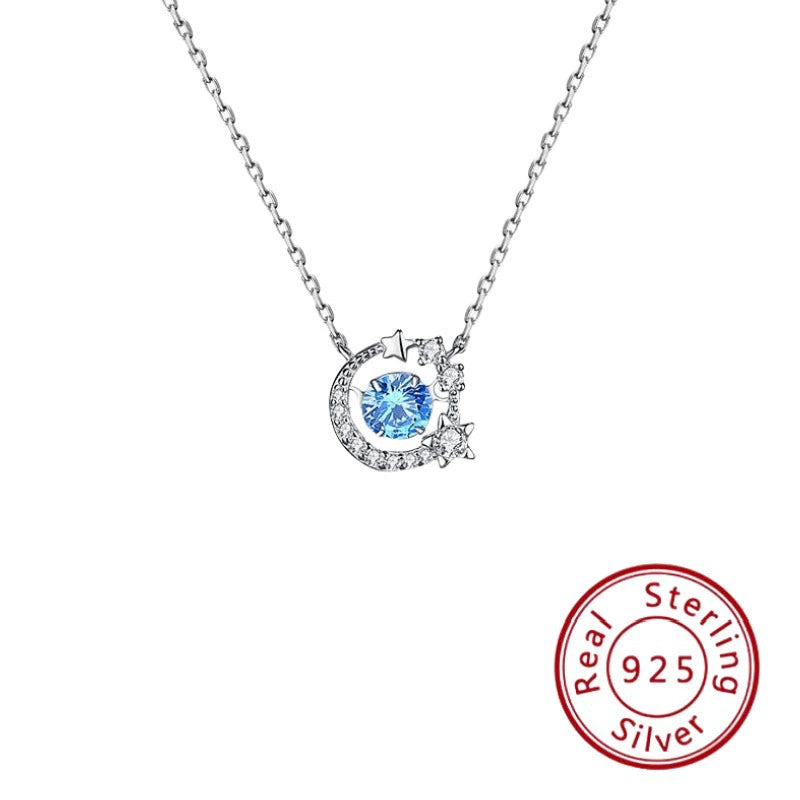 Sterling Silver Star Holding Moon Pendant Clavicle Necklace Highend Sense Jewelry