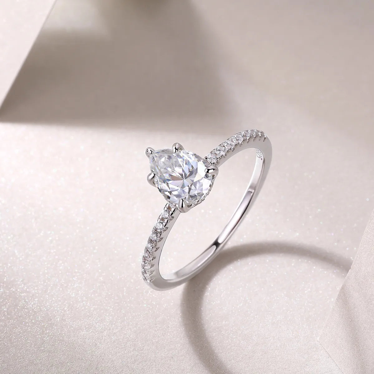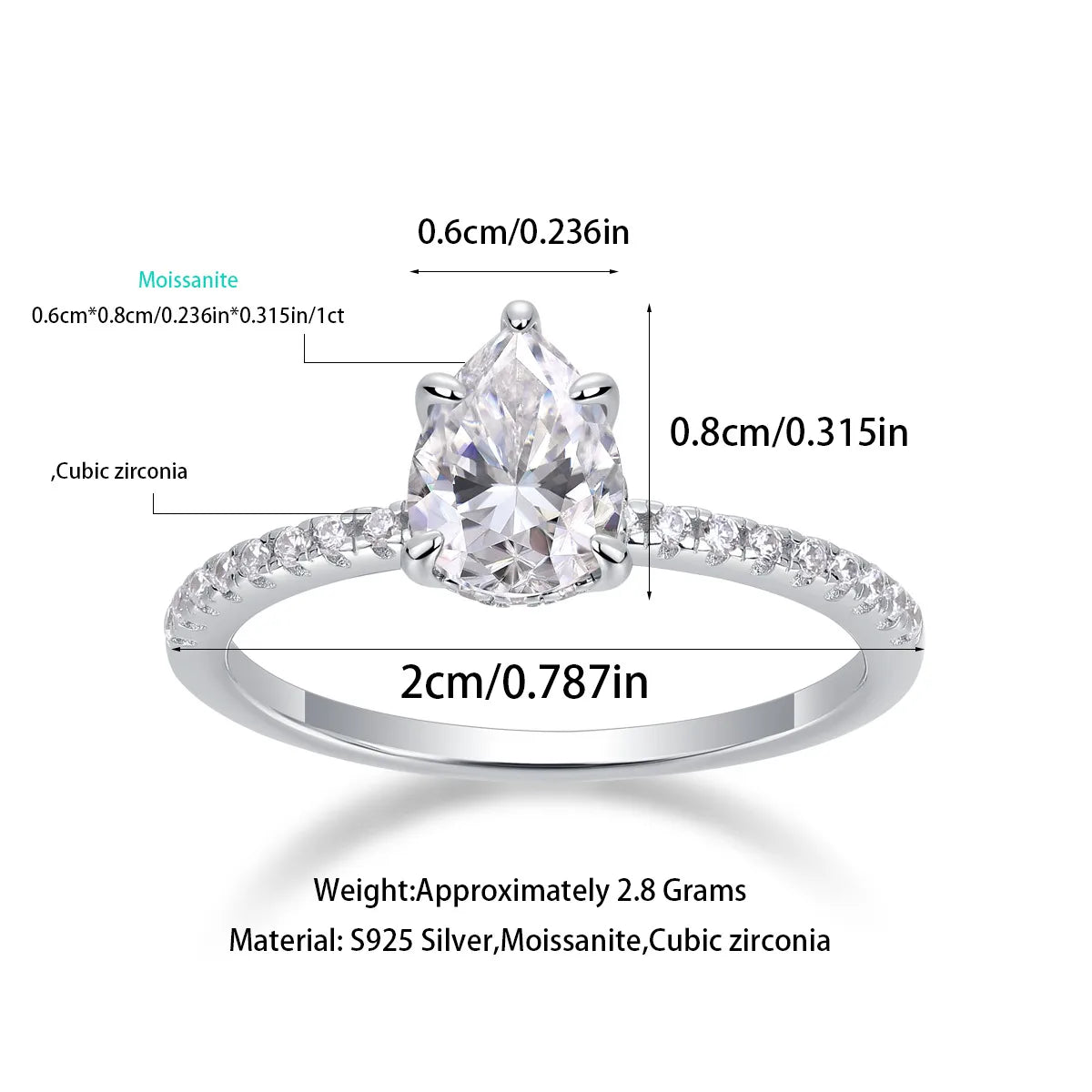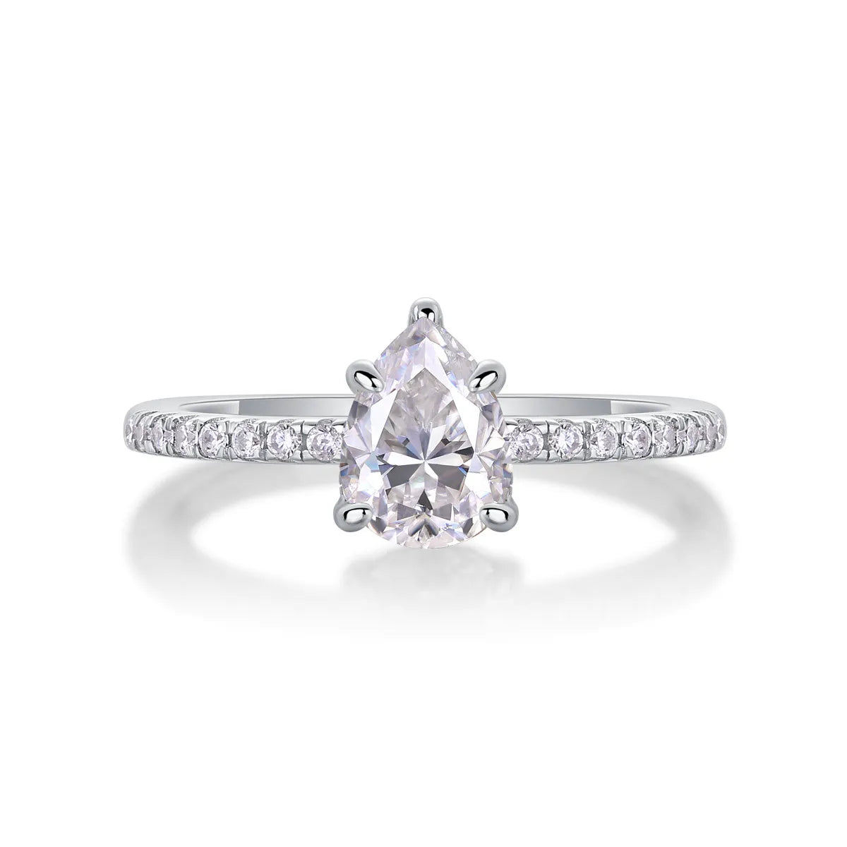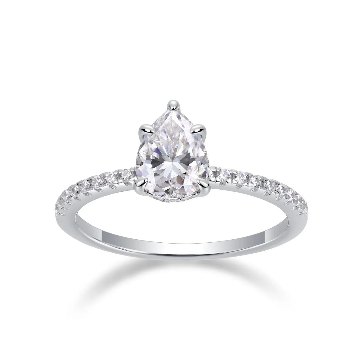 Sterling Silver White Gold Plated Simple Style Shiny Polishing Inlay Water Droplets Moissanite Rings