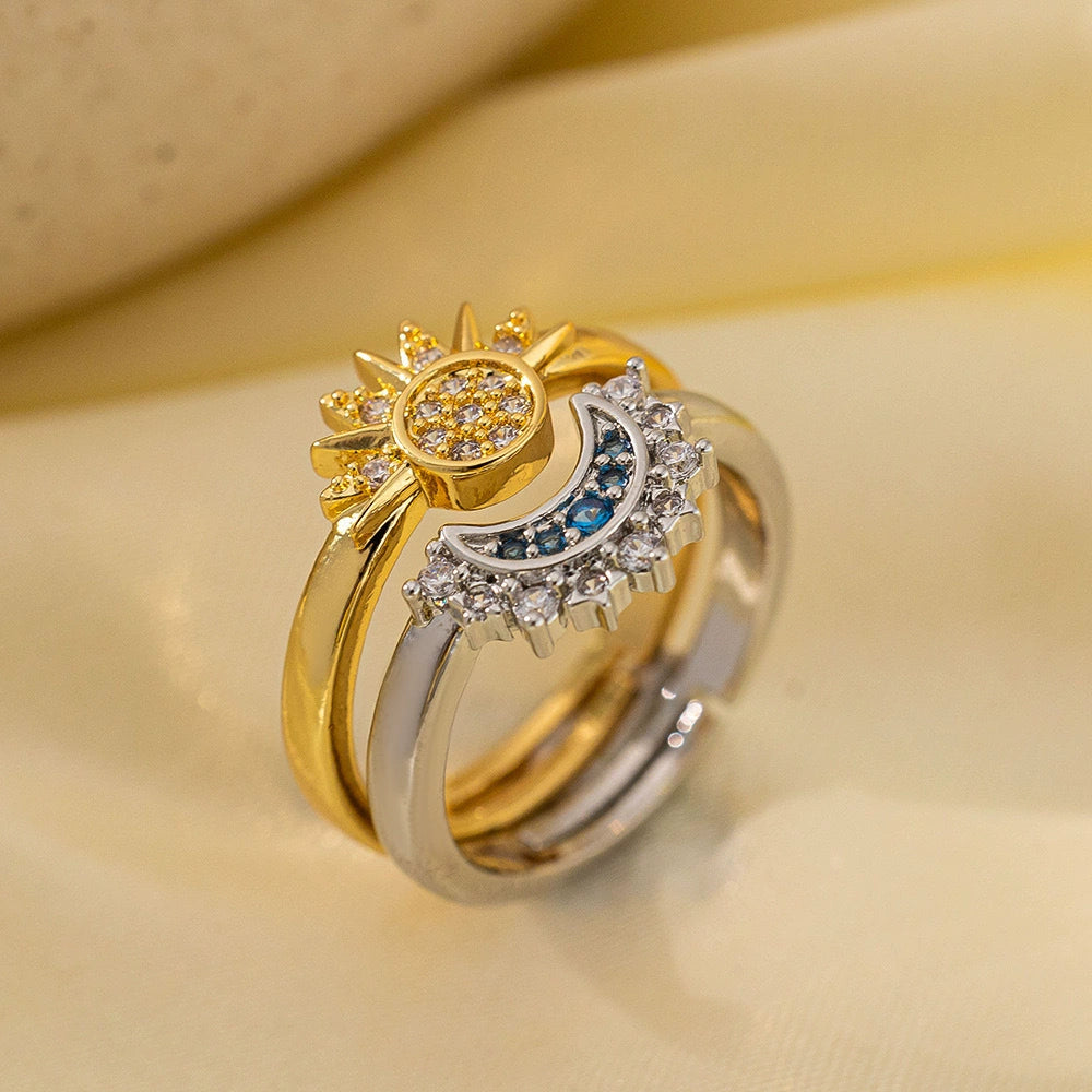 Sun Moon Tonghui Opening Ring Pendant Microinlaid Zircon Titanium Steel Necklace Bracelet Light Luxury Design Sense Couple Pair Copper Electroplated Star Geometric Pattern