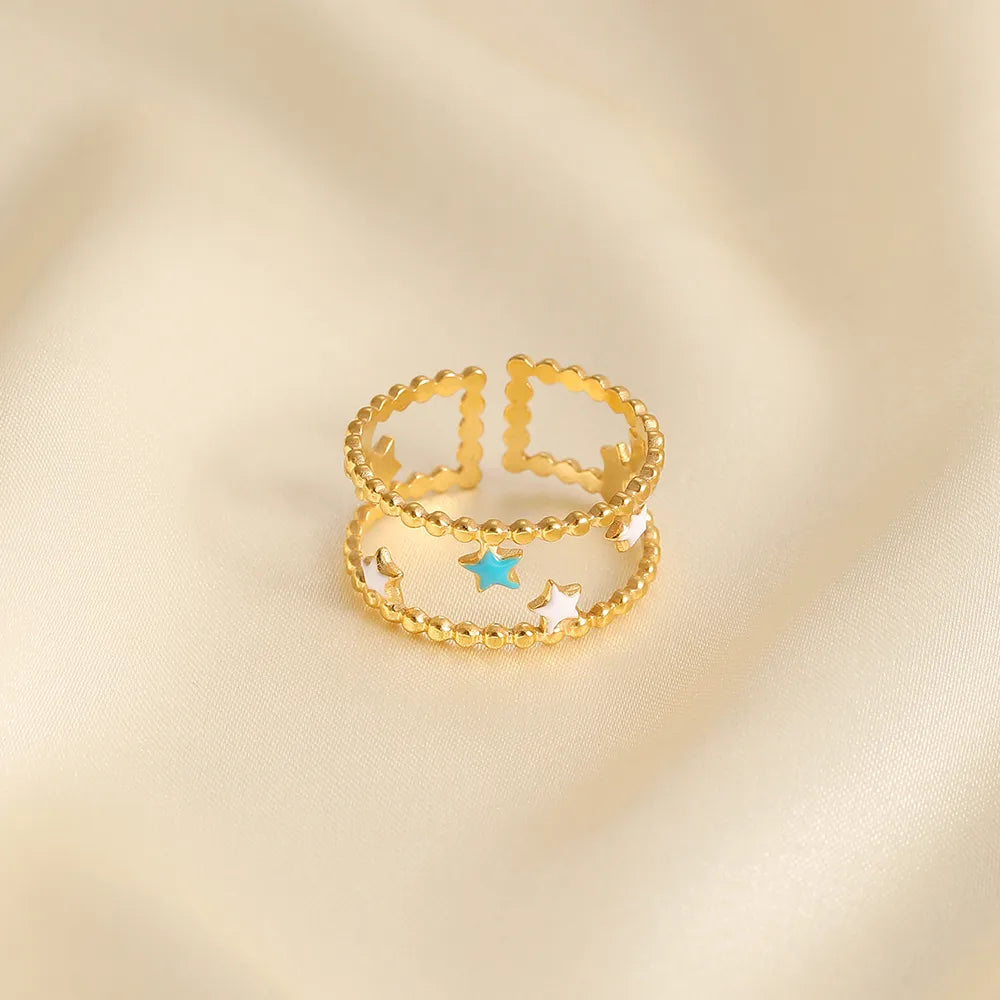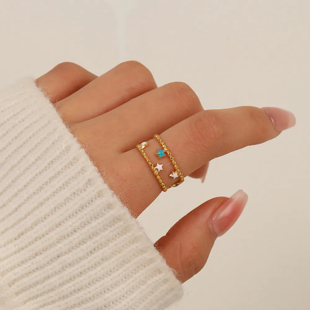 Sweet Commute Star 304 Stainless Steel 18K Gold Plated Open Rings In Bulk
