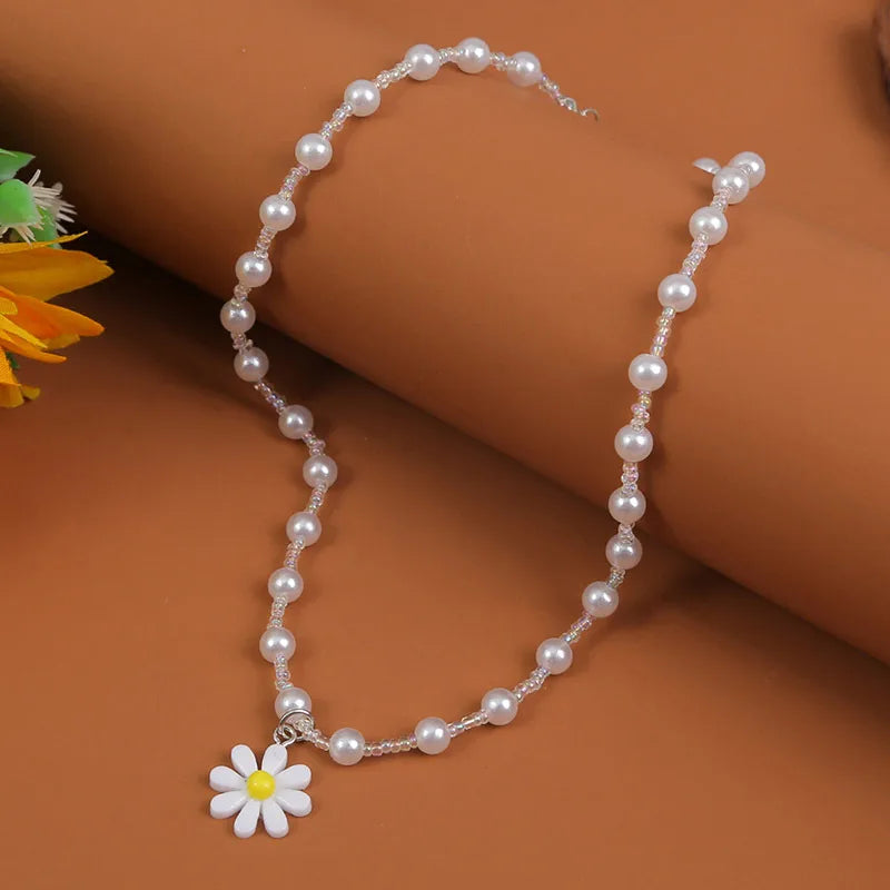 Sweet Daisy Plastic Resin Beaded Women'S Pendant Necklace