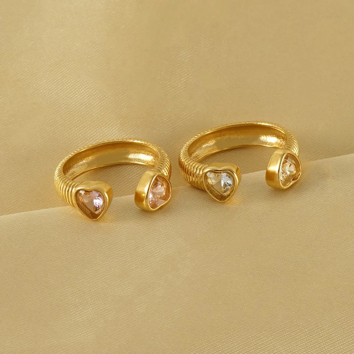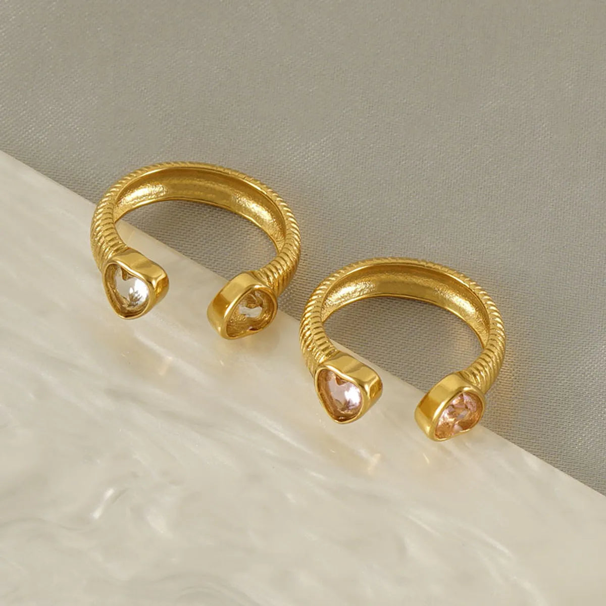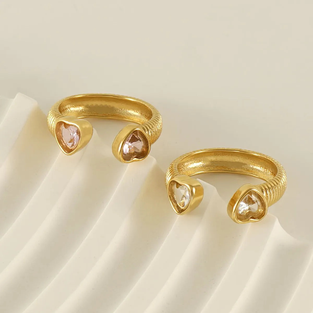 Sweet Heart Shape Stainless Steel Inlay Zircon 18k Gold Plated Open Ring