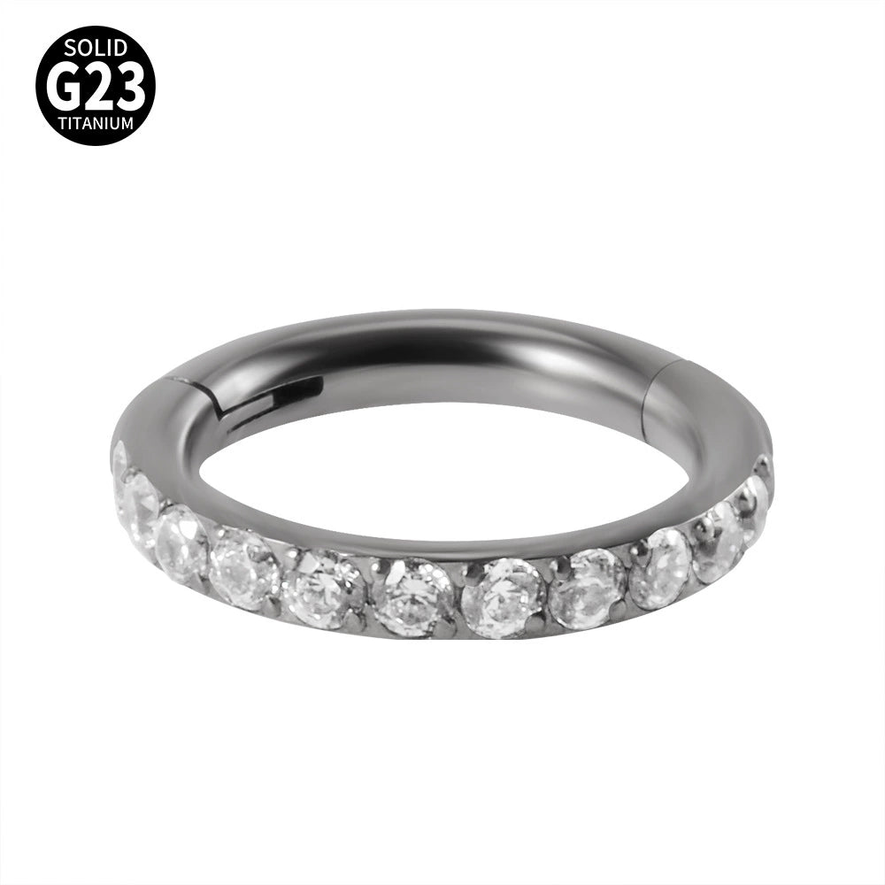 Titanium Geometric Carved Zircon Nose Ring Polishing Unisex Piercing Nose Ornament Ear Bone Ring
