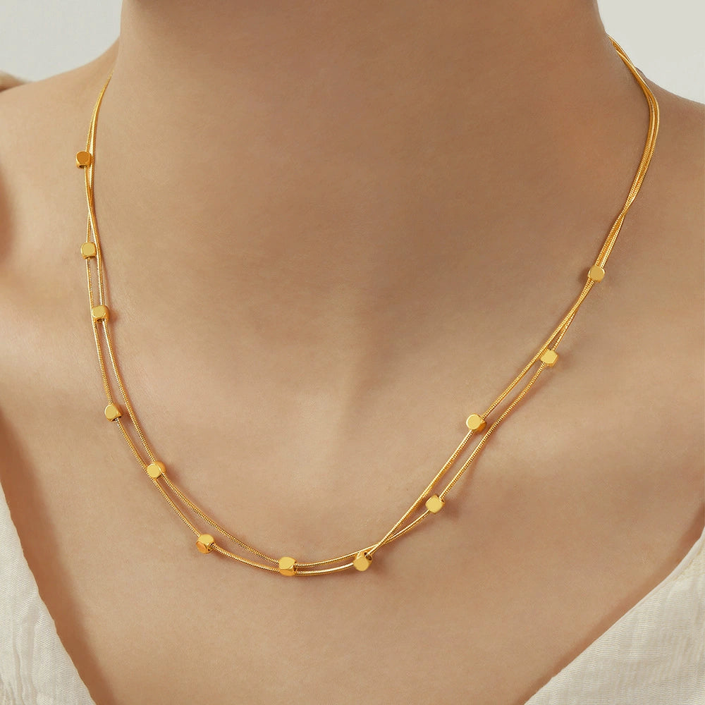 316L Stainless Steel Geometric Pattern Fashion Clip Bead Chain Double Layer Clavicle Necklace